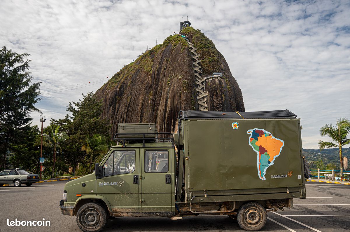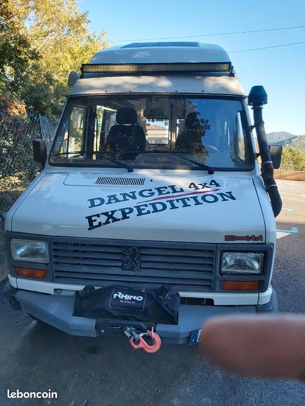 Le porteur est un Peugeot J5 2l5 turbo diesel à direction assistée, 4x4 par Dangel, entièrement mécanique (pas d’électroniques )176800 km. Le contrôle technique est ok. Ce camion à été ma maison pendant 5 ans sur la route.