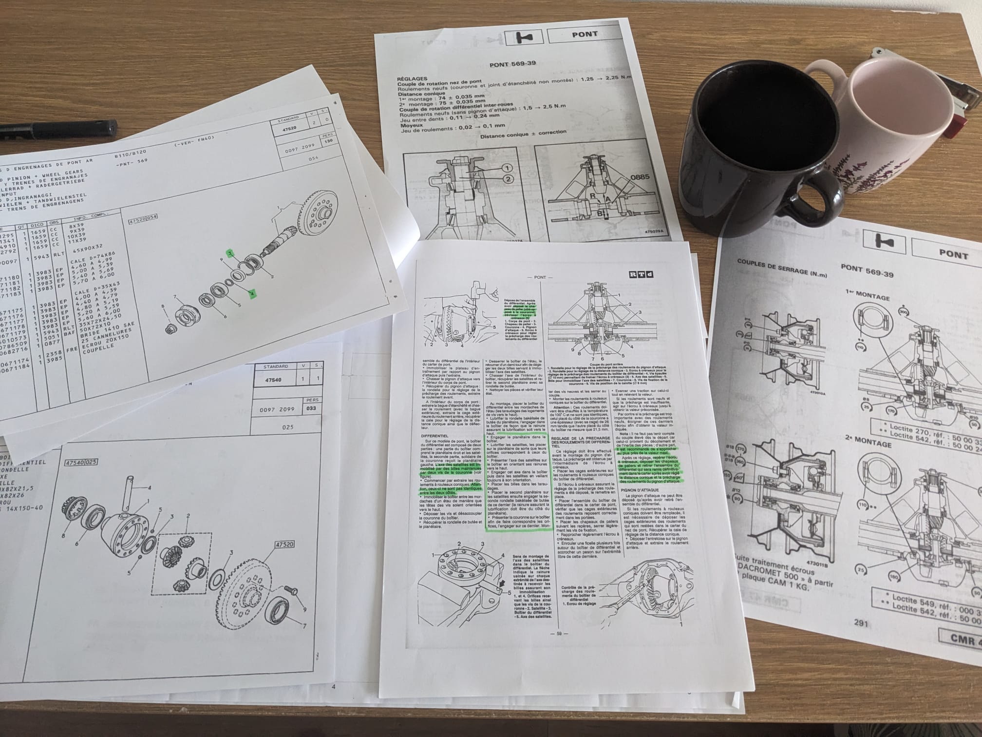 • 569-39 : Première version, précharge des roulements du boitier de differentiel par un écrou à créneaux.
