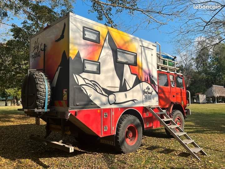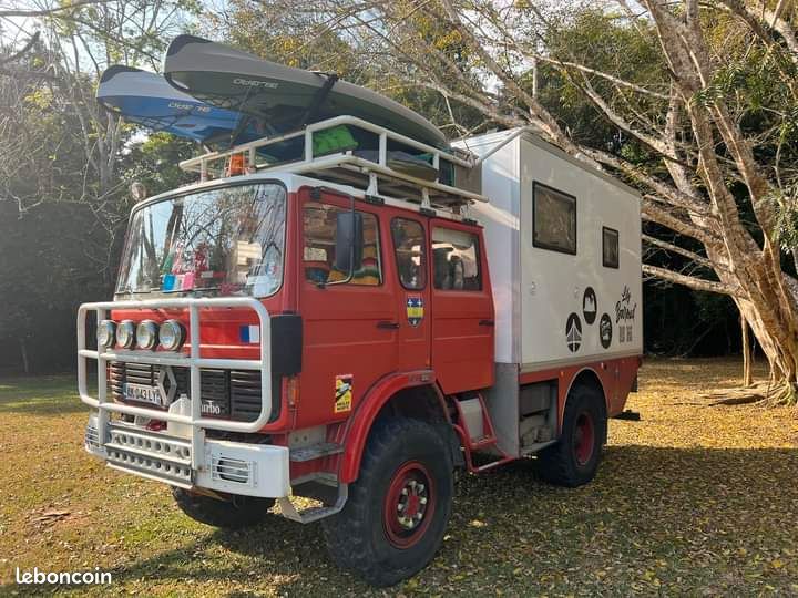 Un ancien camion de pompier français transformé avec soin en camping-car.