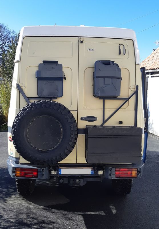 Equipements extérieurs : treuil, 1 feu de travail et une rampe led, pneus TT, 4 amortisseurs Scorpions 3R, 1 jerrican 20 l, 1 valise (rangement), 1 panneau solaire 130 w et batterie auxiliaire, caméra de recul, 2 feux recul led