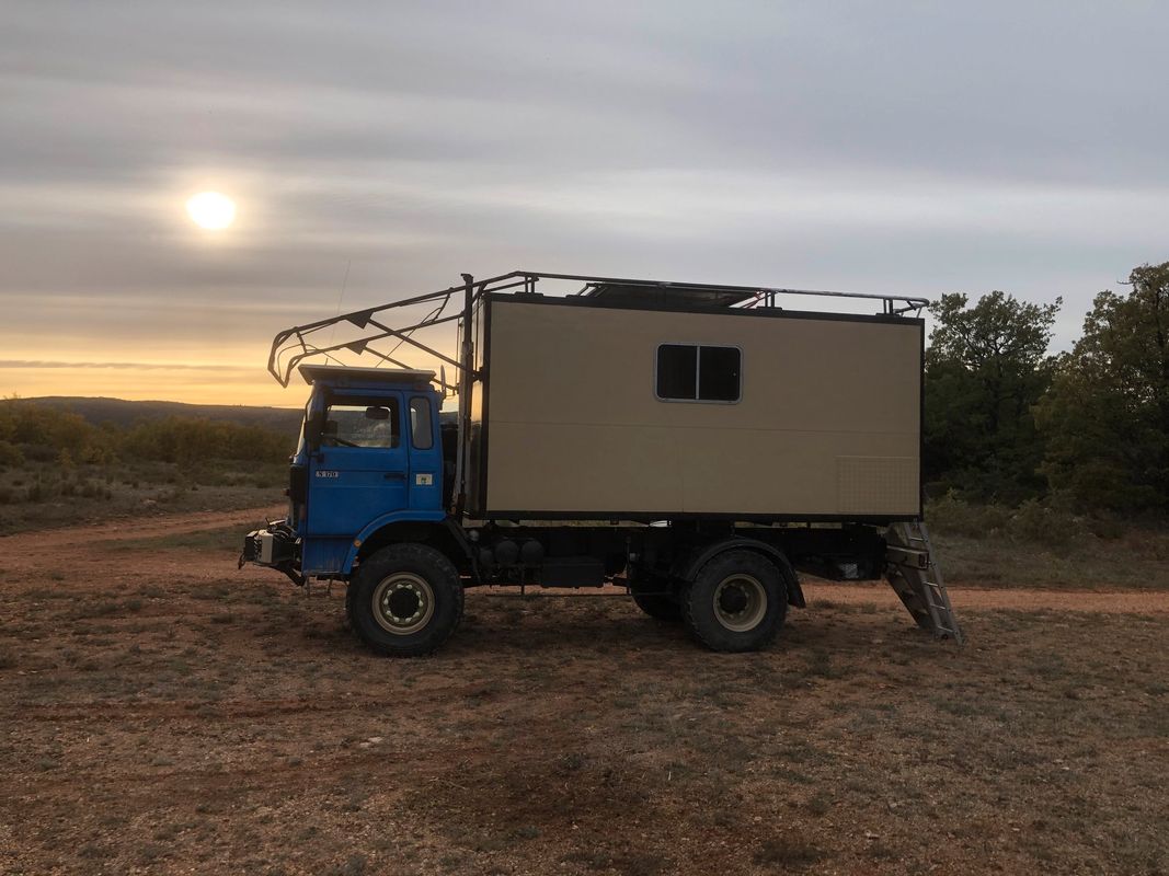 Sur le toit du camion plusieurs barres pour attacher du matériel.