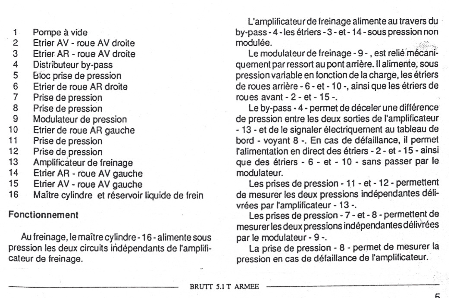Si vous êtes le possesseur d'un Brimont ou si vous les connaissez bien pouvez-vous nous décrire le système de frein de ce véhicule.