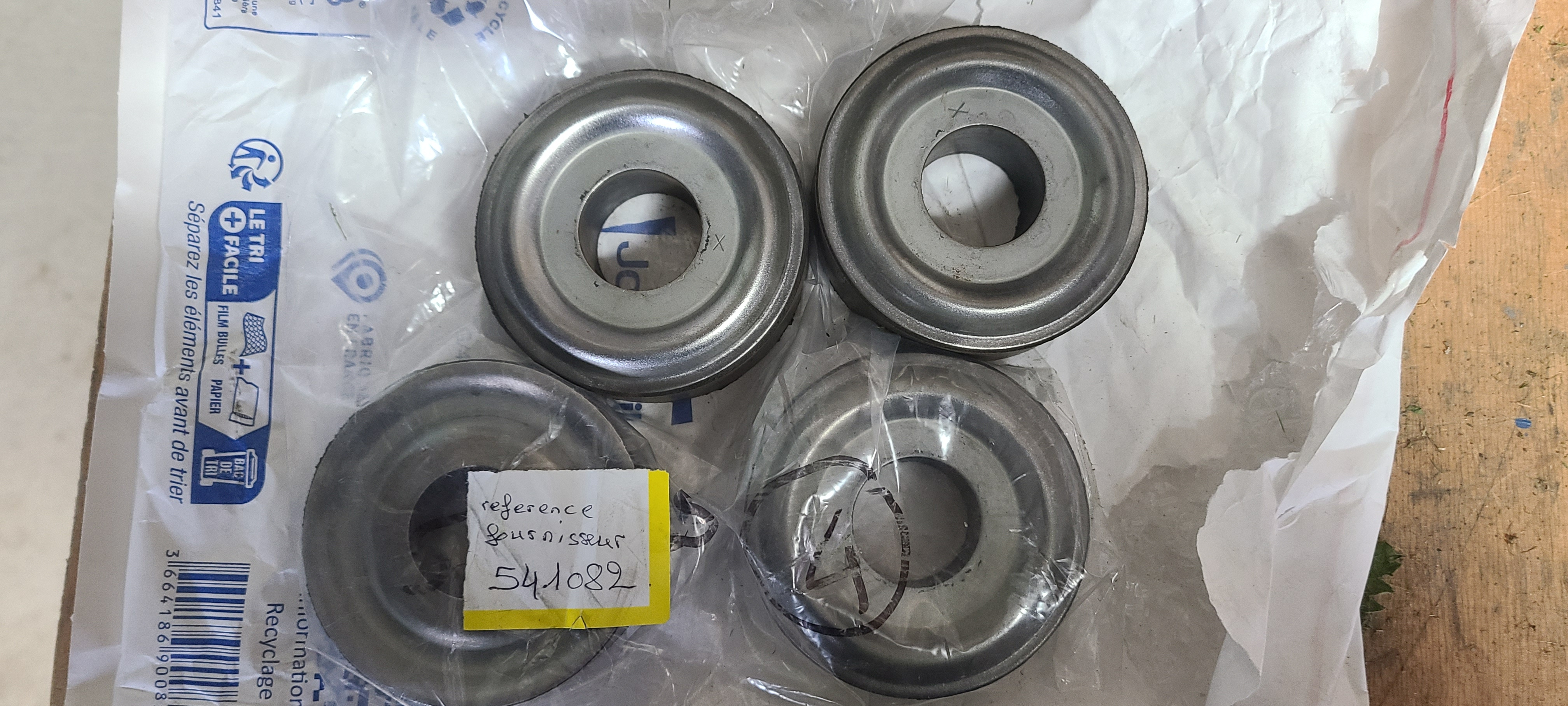 suite des silent-blocs pour tirant de pont avant . Ce sont ceux qui vont coté châssis . je les ai reçu et ils correspondent aux anciens . Je vous confirmerai tout ça dès que je les aurai monté . ( Début mai je pense , je viens de me bousiller un doigt !) La boite MABEO est très sérieuse et la commande n'a pas posé de problème . La livraison a même été très en avance sur la date prévue .
