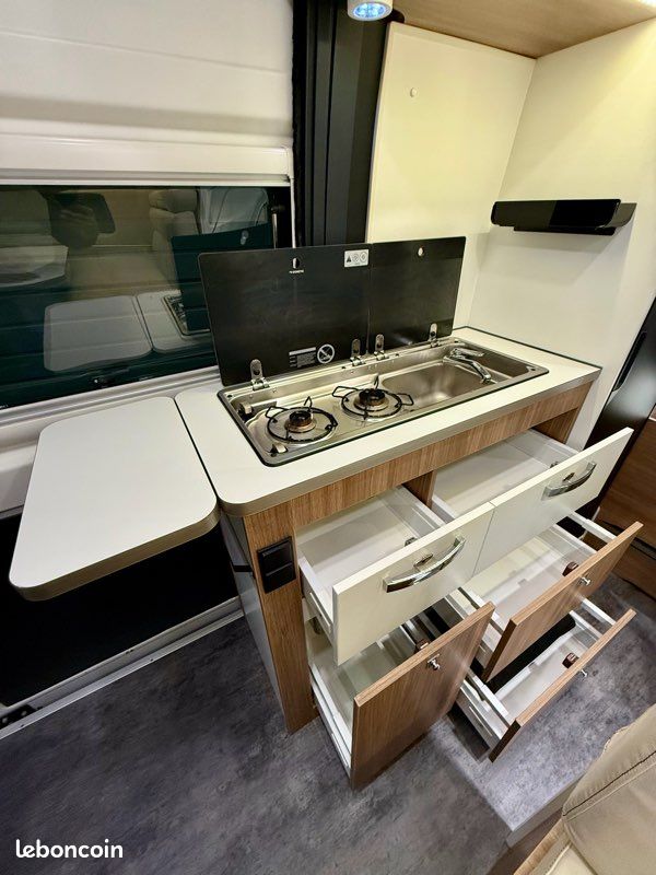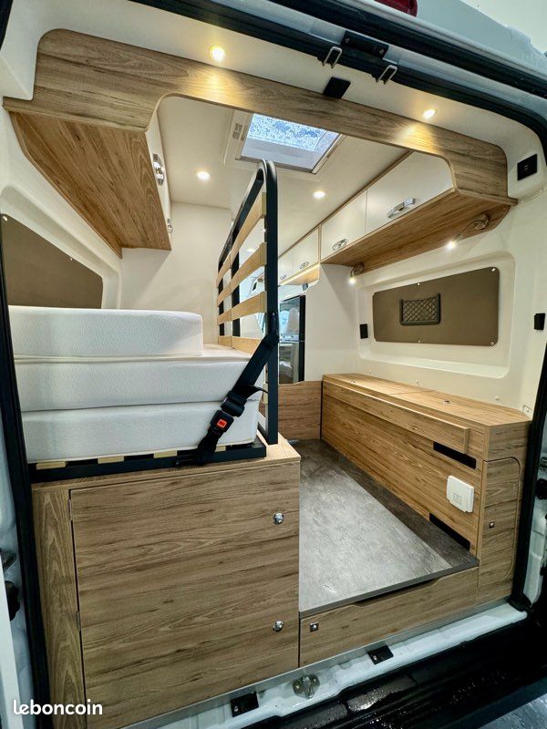 Des grands placards sont installés au dessus des sièges conducteur et passager, et au dessus de la banquette route.Mise en vente car les enfants ont grandi, et nous voulons passer sur un projet de véhicule plus petit
