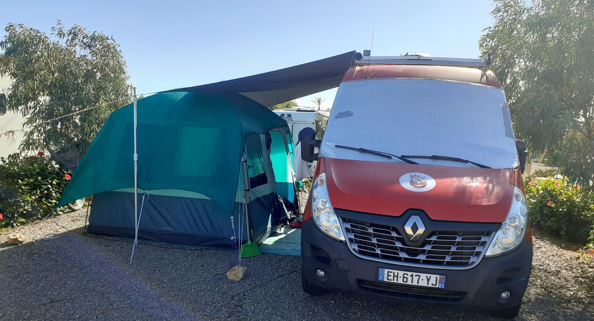 Un rideau isole l’espace arrière, et un autre rideau isole la cabine.