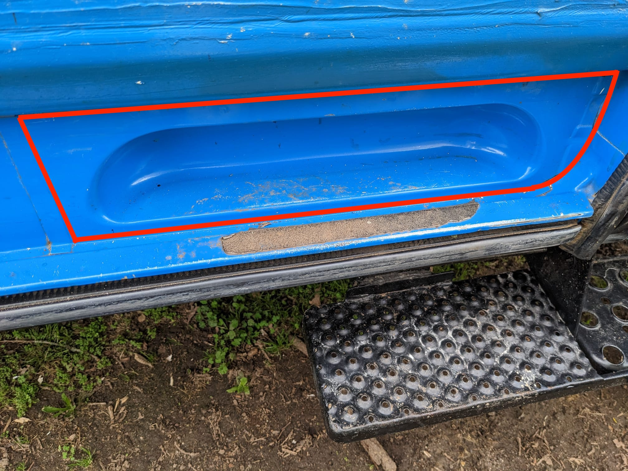 Pour pouvoir monter le marchepied, j'ai fait fabriquer des profilés en aluminium d'après un croquis à la main ; également non documenté.