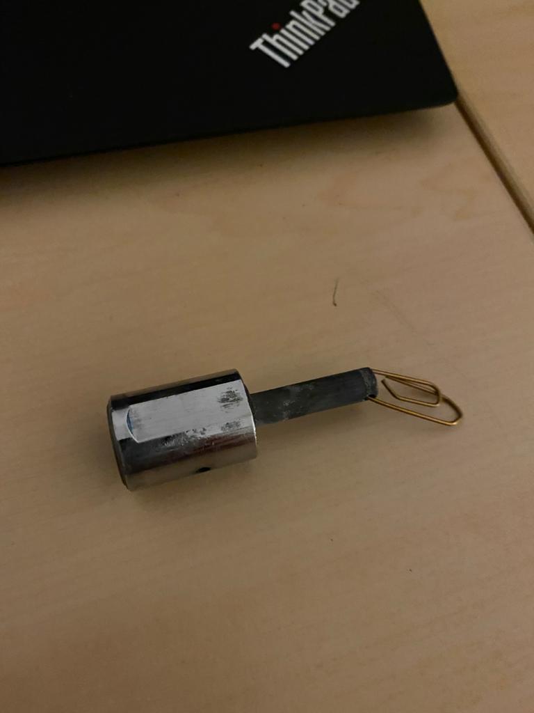 puis j'ai été voir mon quincaillier préféré qui fait aussi les clées... il m'a trouvé la bonne clée qui va dedans... et hop rebelote avec la vrai clée...