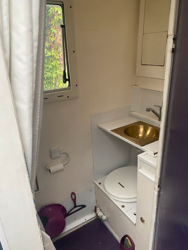 Le cabinet de toilette comporte une douche et des toilettes sèches.