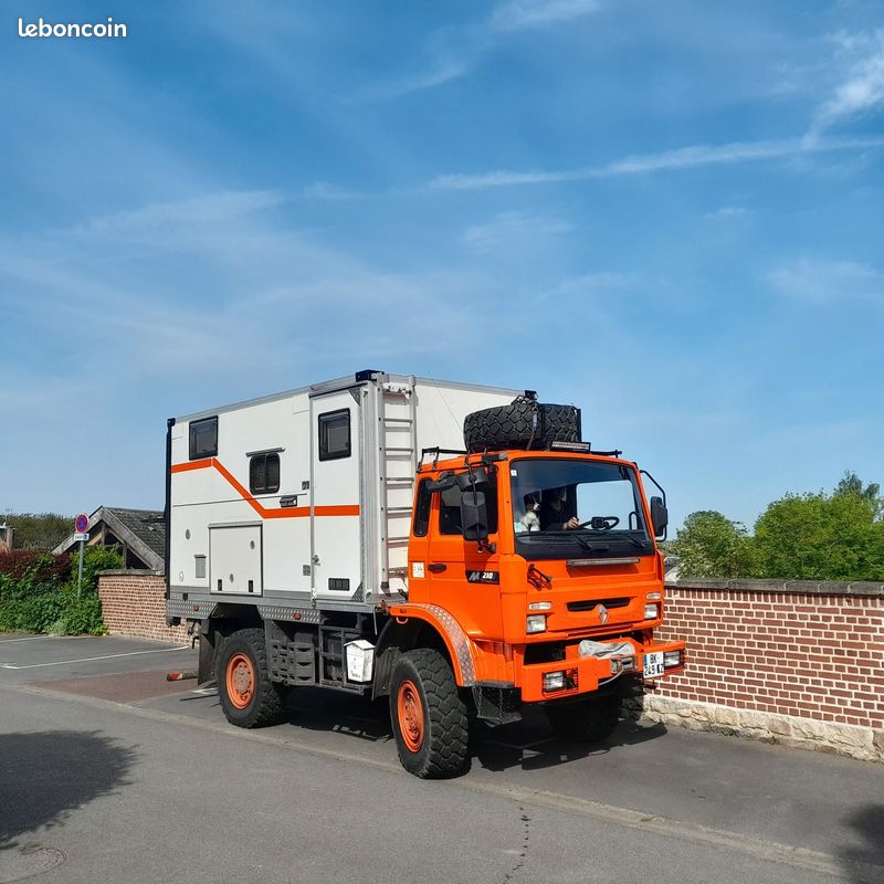 Le Porteur : Renault Midliner M210 4x4 . Année 1999 , Moteur Euro 2 sans électronique (injecteurs mécaniques) . 135000 km ; Boite 6 vitesses ( 6 longues et 6 Courtes) • Cylindrée 6174 cm3 Dimension : 6.80 x 2.40 x 3.65 Cabine 3 places . PTAC : 10 Tonnes PTRA : 13.500 Tonnes. Camion très maniable, empattement court 3.05 m.