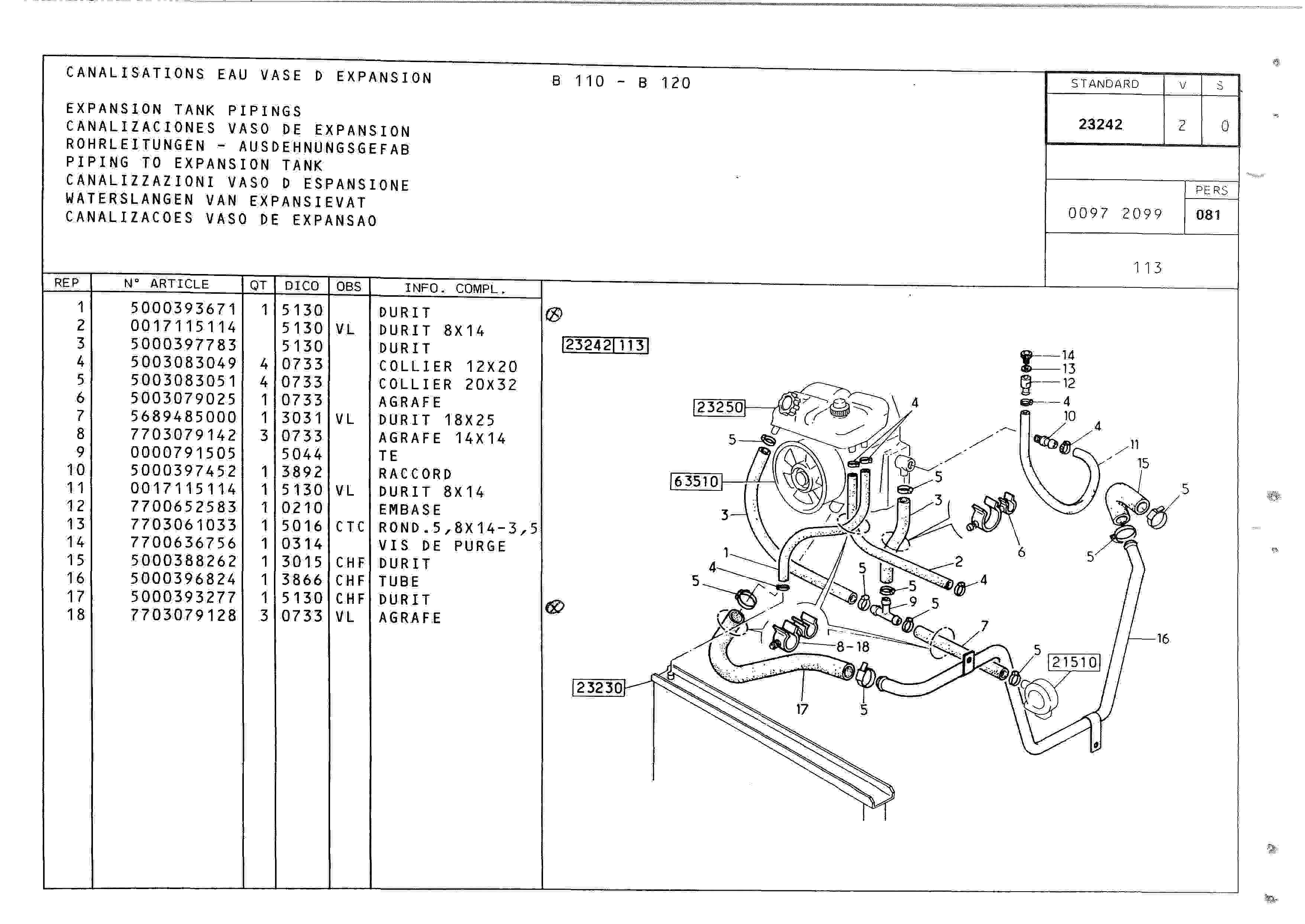 Le tuyau 15 est la sortie de la culasse (chaud) Le tuyau 5 est le côté aspiration de la pompe à eau. (Froid)
