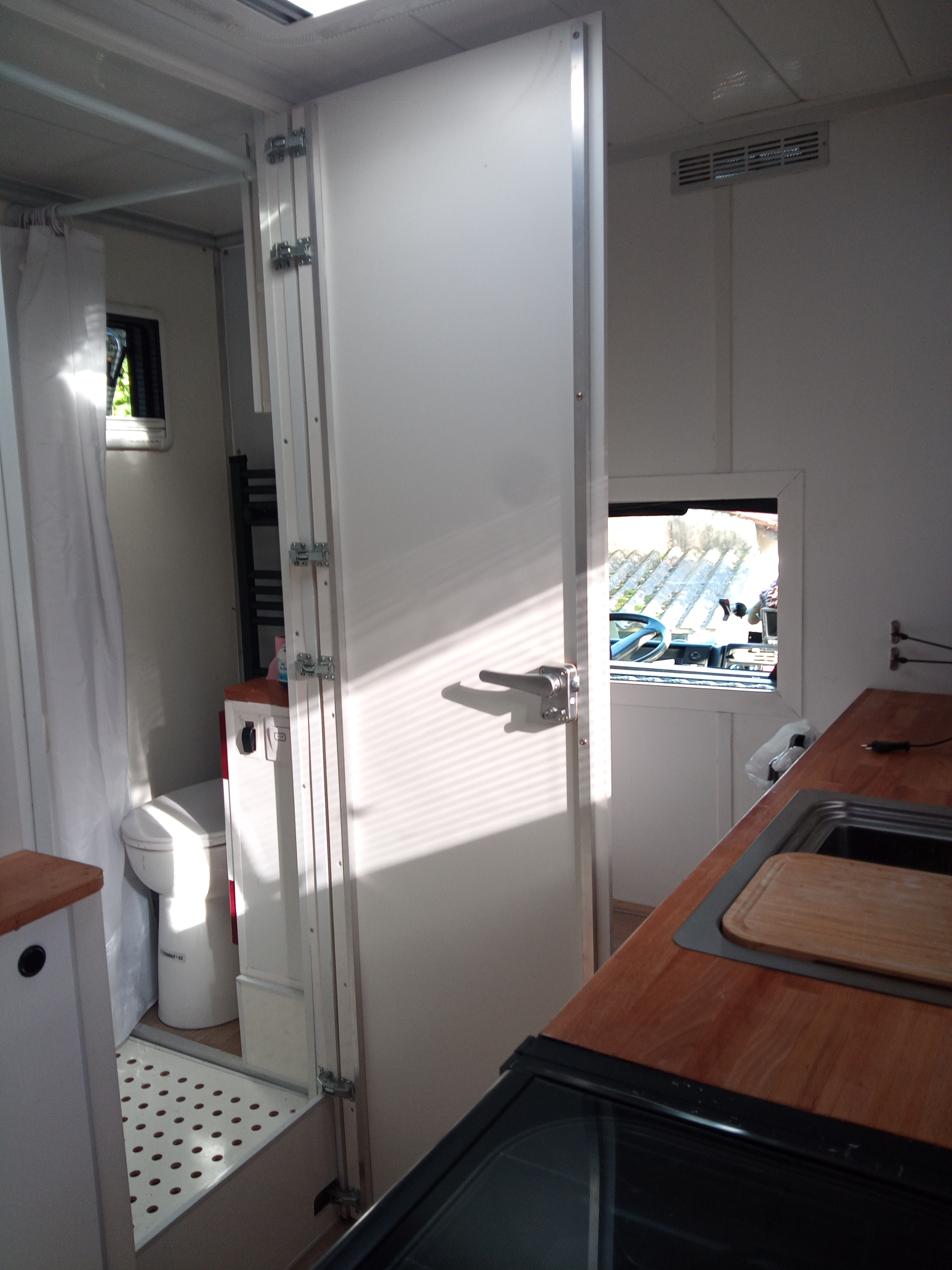 j'ai 2 places en cellule face à la table dinette, il faut modifier la table pour la rendre escamotable pendant le roulage ( j'ai pas vue la normes !), installation d'un table " fantoche" , photos pour compléter le dossier et je replace l'ancienne table avec le pieds centrale.