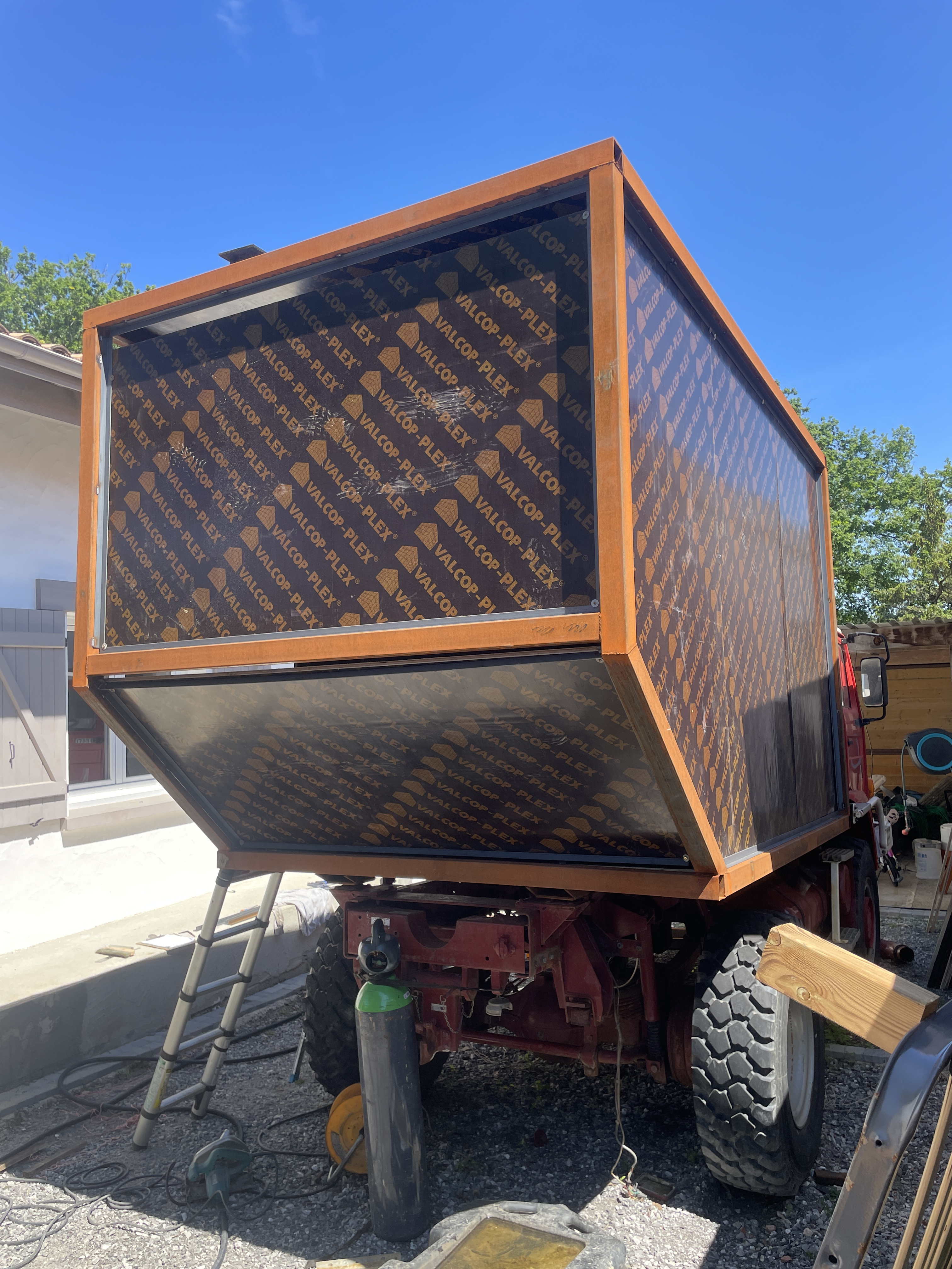 Par la suite , j’ai plaqué l’intérieur avec du contreplaqué compressé qui sert à construire les murs bancher, épaisseur 19mm
