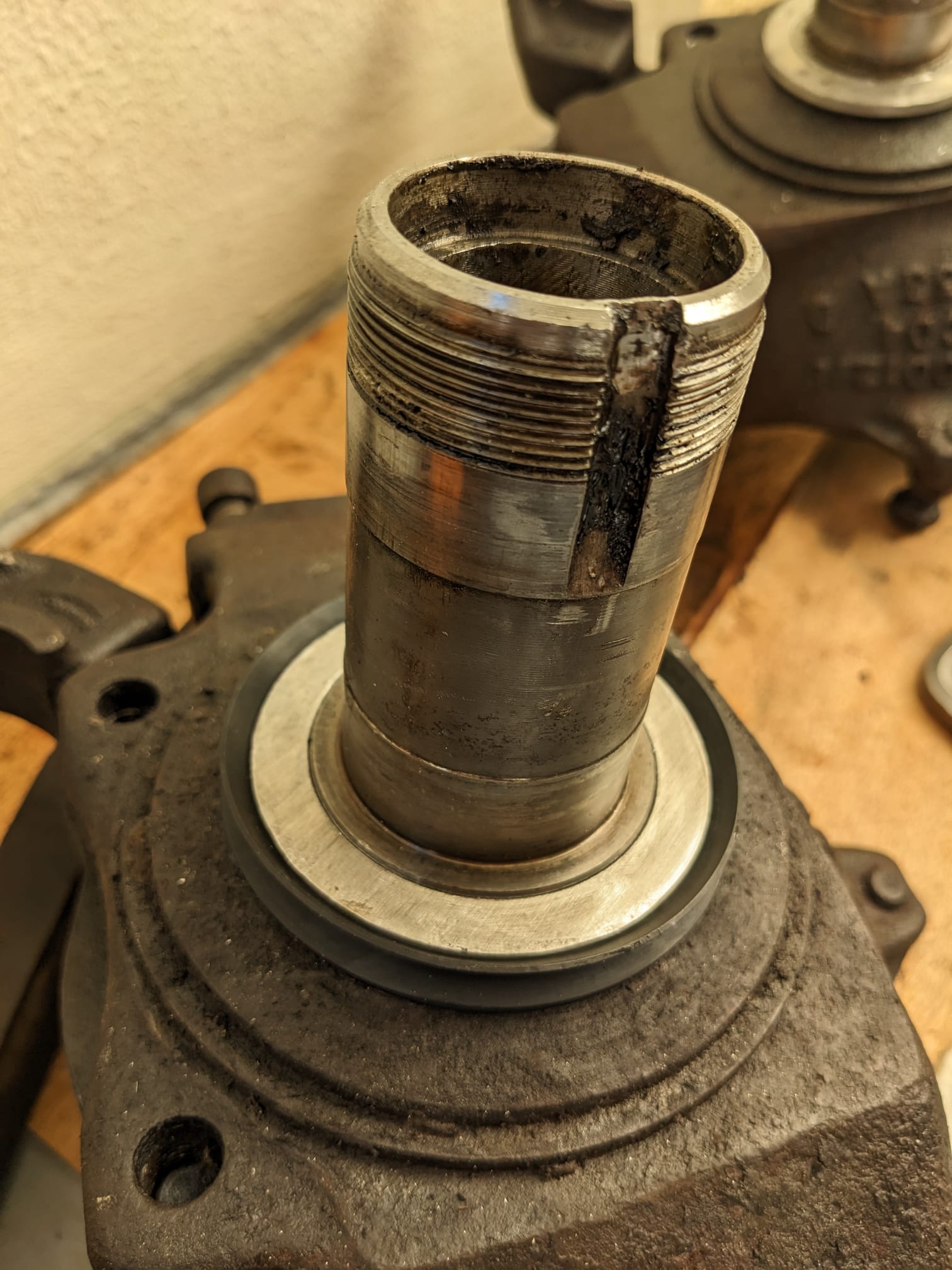 Suite à la découverte d'un jeu important dans mes pivots, du à l'usure prononcé des bagues en bronze (en haut) j'ai choisi de réaliser le montage des JHC directement sur mon camion. Je documente sur