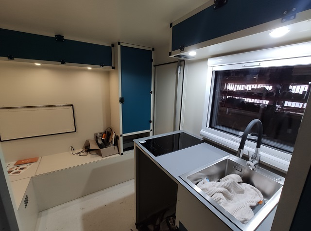 nous avons 250l d'eau propre, 150 d'eau grise, 600ah de batterie, chauffage autoterm 4D et chauffe eau autoterm 3 energies : air, elec, echangeur.