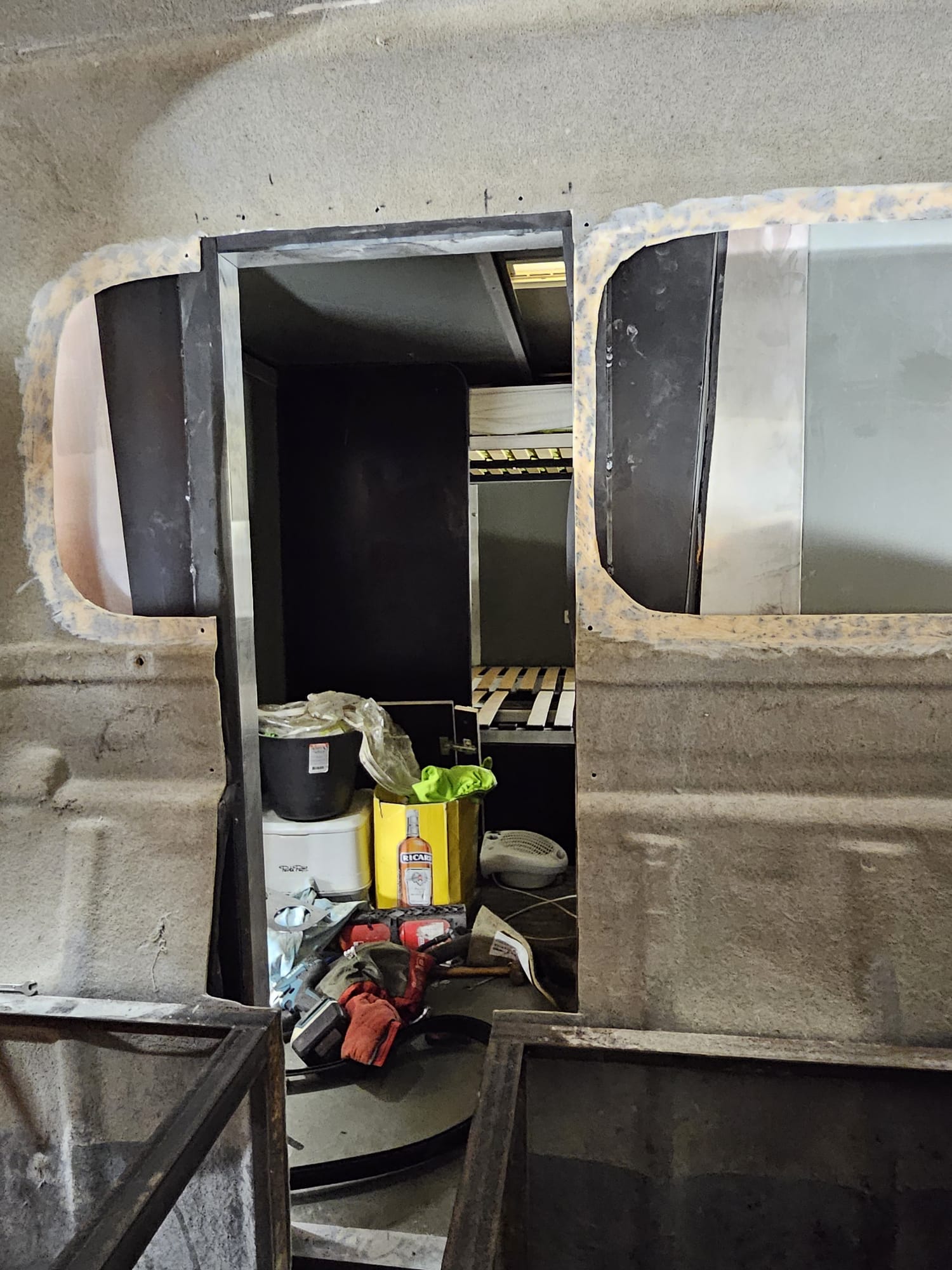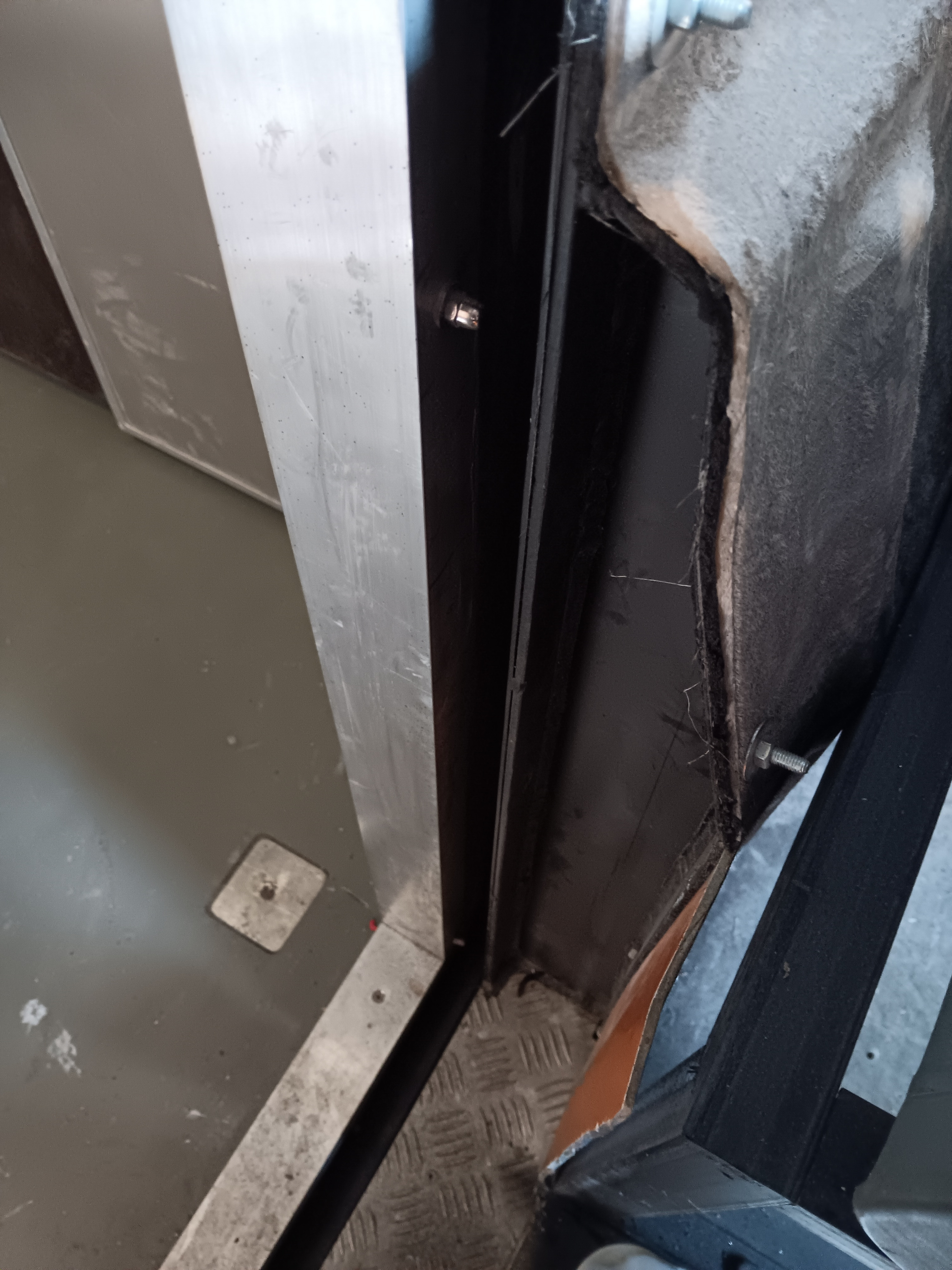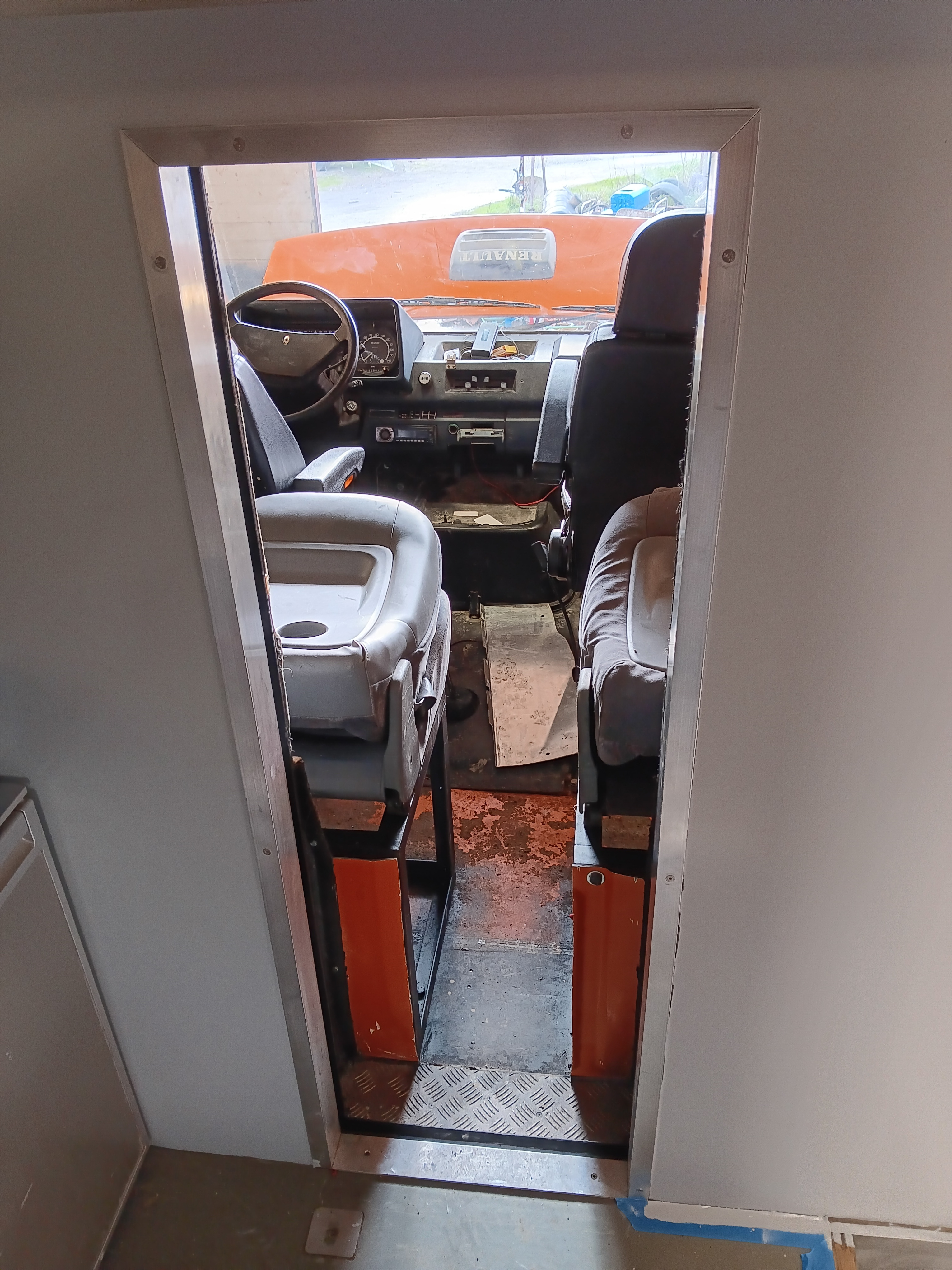 Fabrication du faux châssis entre la cabine et la cellule l'étanchéité se fait avec un joint à lèvre qui frotte sur la cellule avec une plaque inox pour ne pas user celle ci