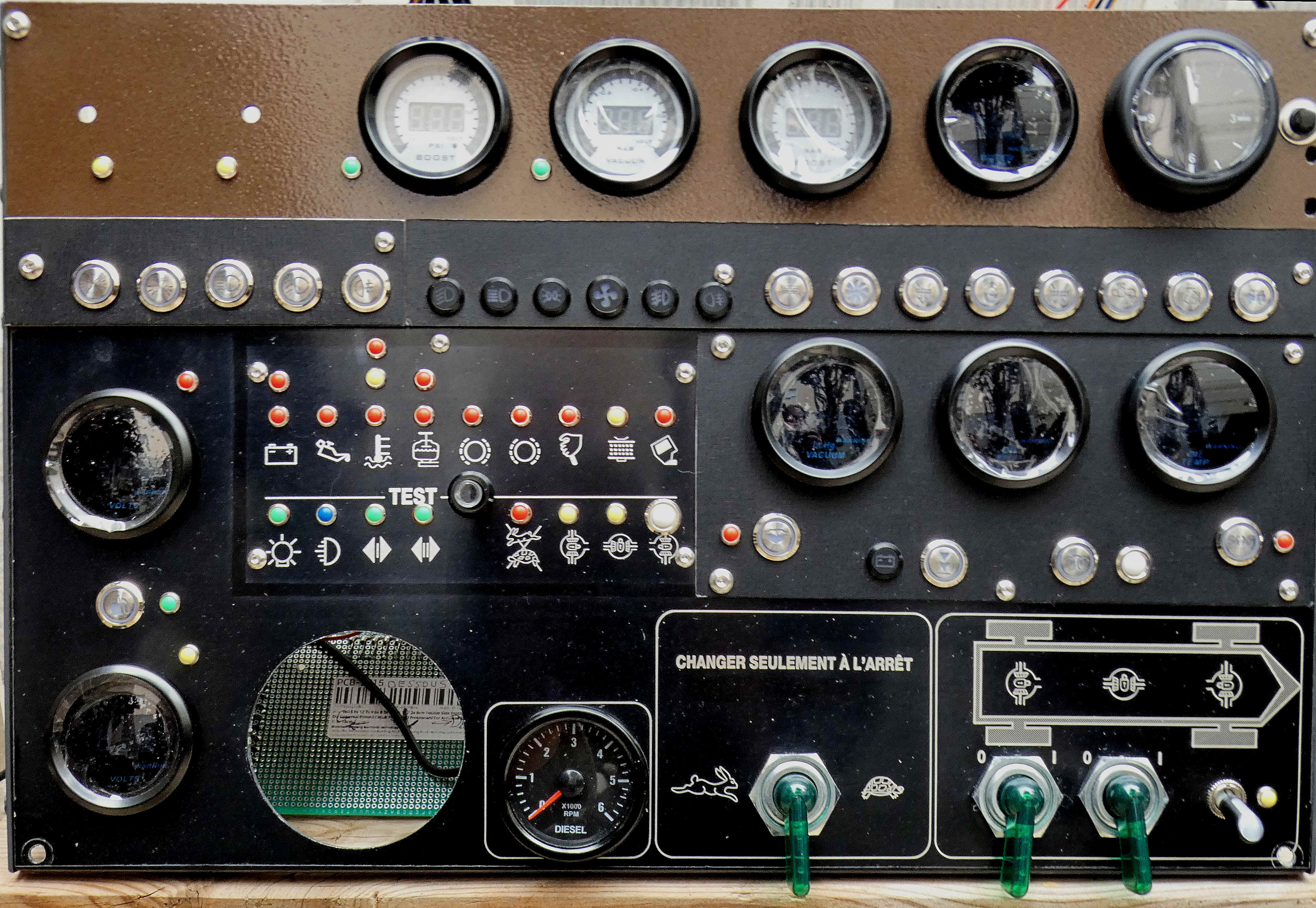 J’ai l’avantage de connaître l’électronique et de pouvoir concevoir un schéma, d’en réaliser la gravure et l’assemblage et ensuite le test et la mise au point. J’aurais pu suivre mes conseils et installer toute l’électronique dans un rack, mais je ne suis pas constructeur automobile qui lance une série, le travail de mise au point des circuits est un peu long tout de même, donc je suis parti de circuits existants en kit afin de gagner du temps. Mais ces circuits, un pour chaque fonction, je peux les modifier pour les adapter à mes besoins et cela me prends moins de temps que de les concevoir. Compromis n’est pas compromission.