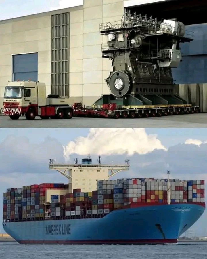Le Wärtsilä-Sulzer RTA96-C est le moteur diesel le plus gros et le plus puissant jamais construit. Ce moteur turbodiesel à deux temps est doté d'une configuration à 14 cylindres, d'une cylindrée de 25 592 litres et produit une puissance impressionnante de 80 080 kW (107 390 ch) à 102 tr/min. Il mesure 26,59 mètres de long, 13,5 mètres de haut et pèse plus de 2 300 tonnes. Conçu pour d'énormes porte-conteneurs tels que l'Emma Maersk, il présente une efficacité énergétique avancée, atteignant plus de 50 % d'efficacité thermique. Le vilebrequin massif pèse 300 tonnes et chaque groupe de pistons mesure 6 mètres de haut. Avec une consommation de carburant d'environ 250 tonnes par jour, le moteur propulse les navires à des vitesses allant jusqu'à 25,5 nœuds, déplaçant efficacement d'énormes quantités de marchandises sur les routes mondiales. Ce moteur représente le summum de l'ingénierie de propulsion marine.
