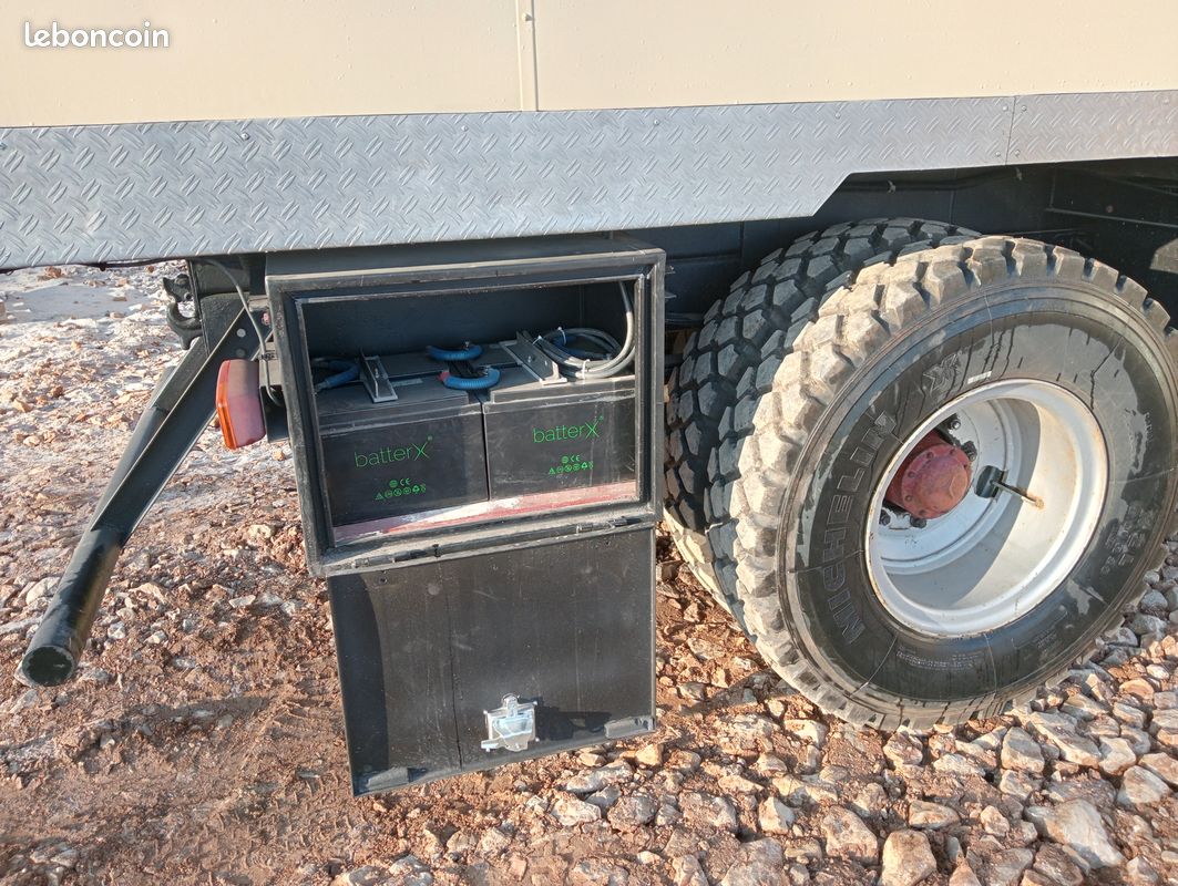 Ce camion à été conçu dans un souci d’ergonomie et de polyvalence : beaucoup d’espaces de rangements, une douche, un toilette, une cuisine confortable, un salon agréable,une chambre ainsi qu’un équipement simple, robuste, fonctionnel et donc plus fiable. La cabine comportes 3 places et le salon est transformable en lit pour un troisième couchage. Les grands rangements et le réservoir d’eau sont placés sur l’avant afin de toujours garder un bon centre de gravité. Tout le système d’eau est a l’intérieur et un chauffage programmable permettent de profiter pleinement du véhicule mème dans des conditions de grand froid.