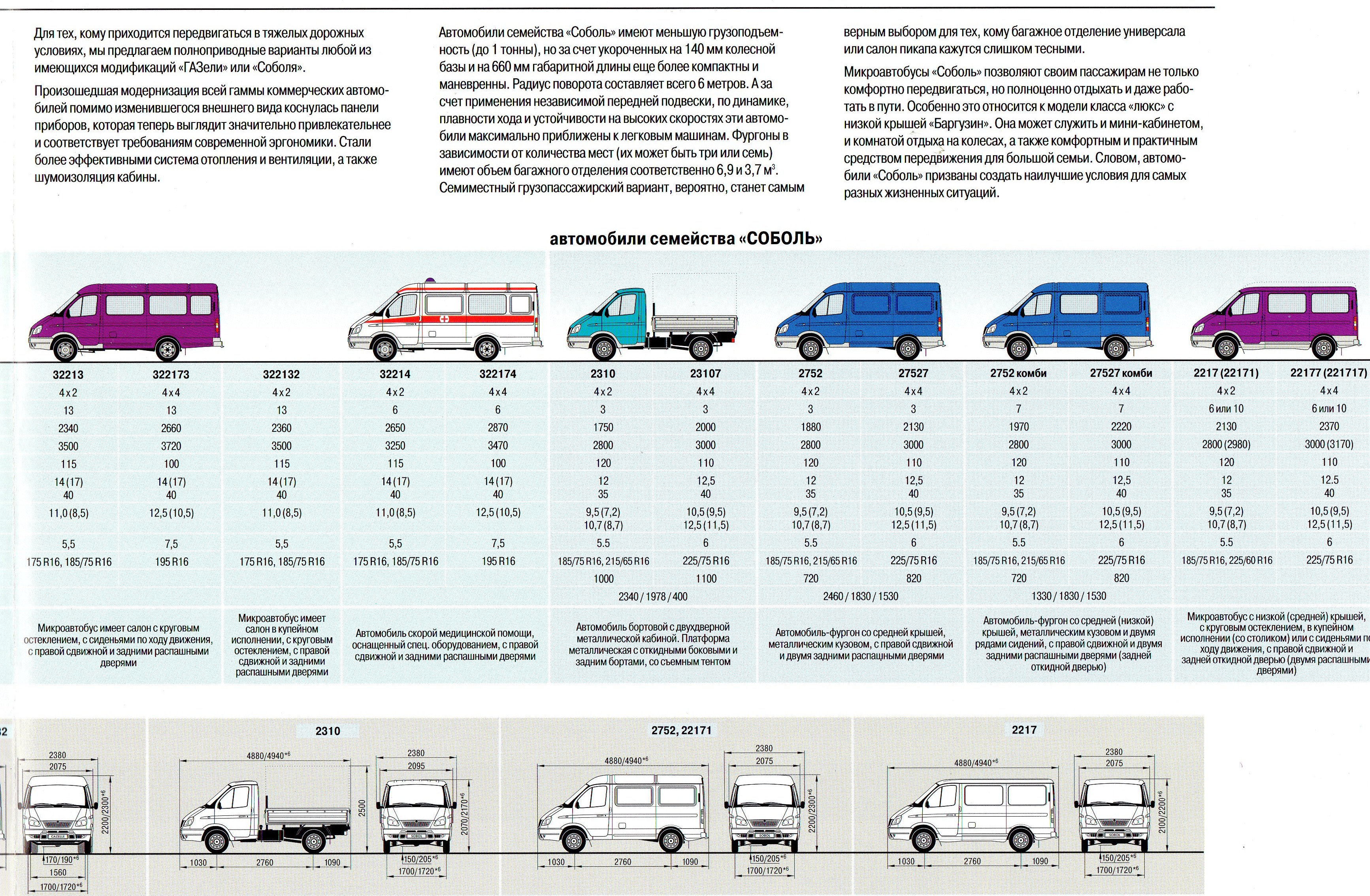 Russes et ex‑URSS : UAZ Profi 4x4, GAZ Sobol 4x4, GAZelle 4x4.