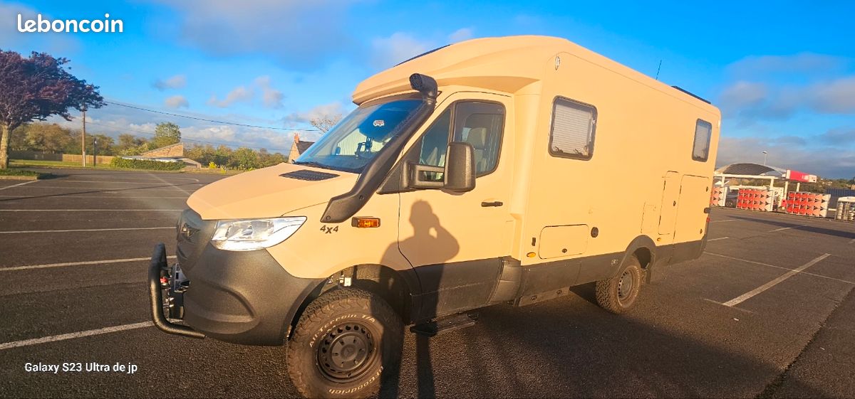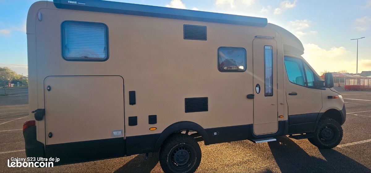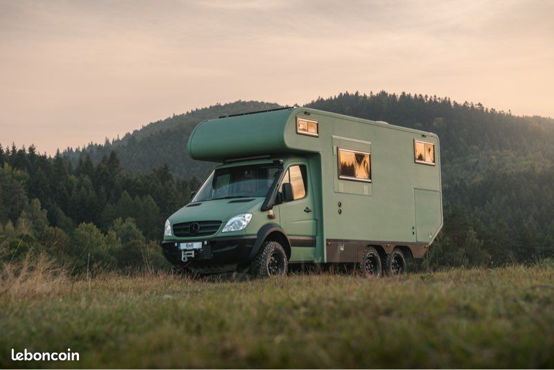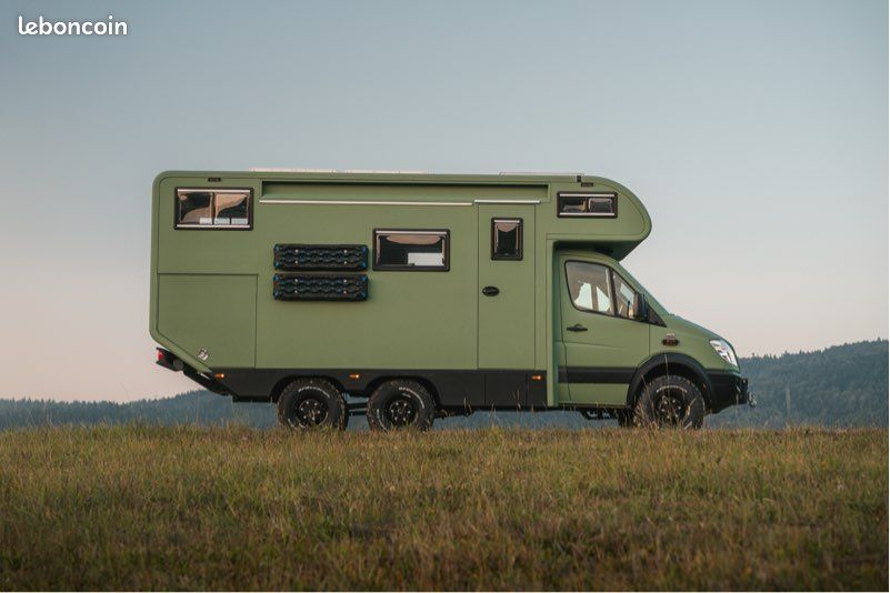 Superbe camping-car d’expédition sur une base Mercedes Sprinter 6x6 Oberaigner. Le dernier construit par Oberaigner, en 6x6 permanent, tous les blocages de différentiel, véhicule unique, exceptionnel et introuvable. Peinture raptor verte, équipé complet haut de gamme, douche recyclée, wc à combustion (plus de cassette chimique!), 1200w de panneaux solaires, 600mA de batteries lithium, gaz et électricité, a/c, compresseur embarqué etc… le véhicule est totalement neuf. Espace de vie incroyable pour voyager au long cours où tout simplement pour vivre. Immatriculé en Pologne en VASP a mon nom. Prix élevé justifié étant donné la qualité de construction et la caractère unique du véhicule