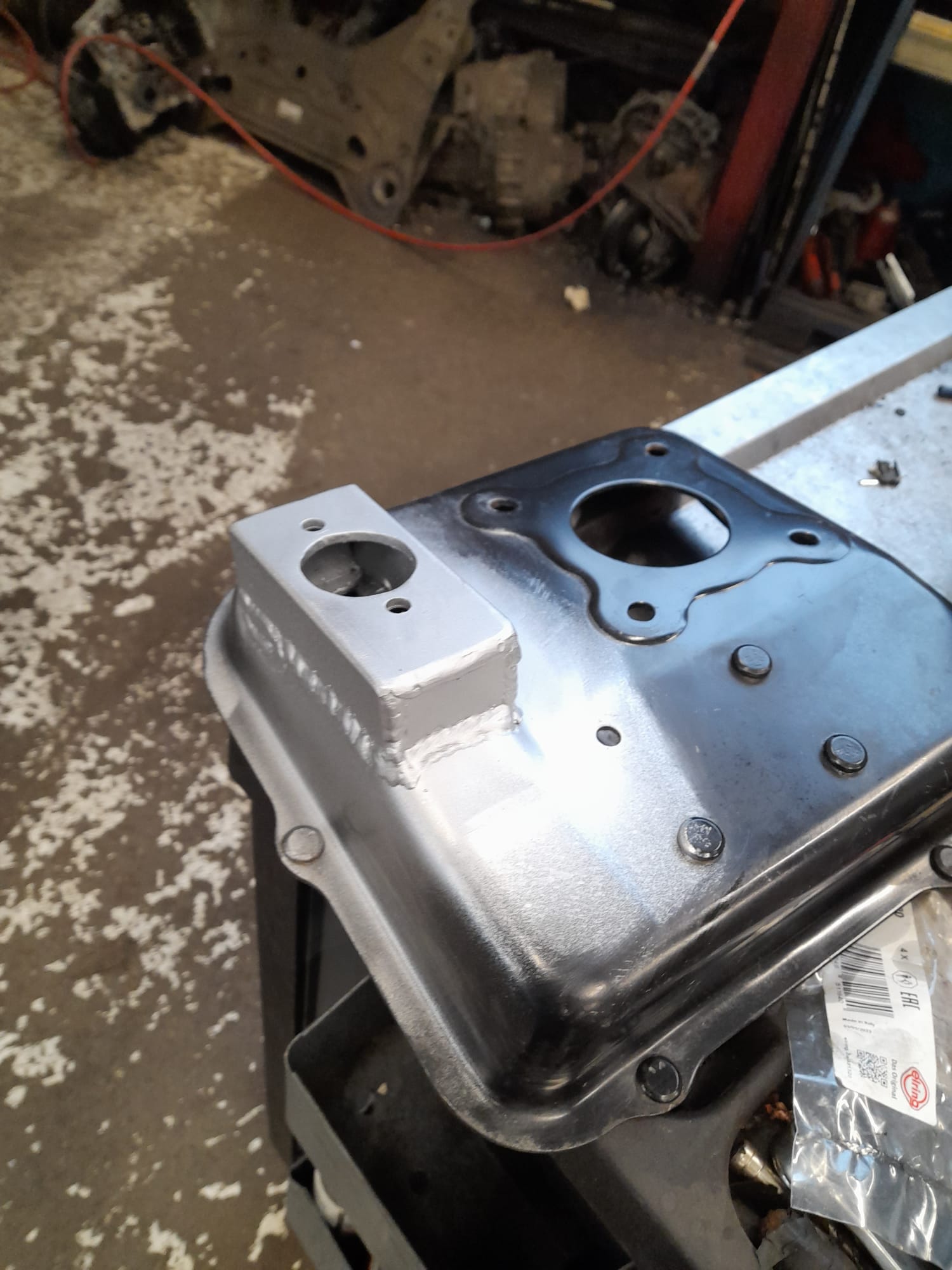 Ici on le distingue bien sur l’ensemble moteur + boite :