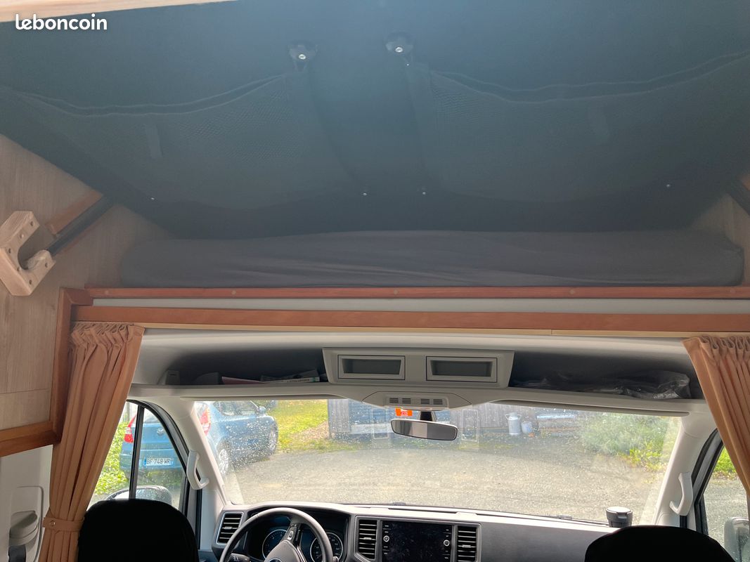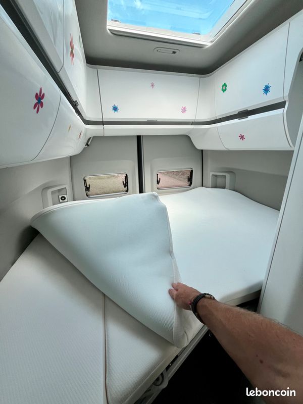 Points forts Version rare 4MOTION avec blocage différentiel, importée d’Allemagne (non disponible en France). Véhicule appartenant à Volkswagen avant mon achat, uniquement utilisé pour salons/expositions → jamais employé en camping-car avant moi. Garantie constructeur Volkswagen jusqu’en décembre 2026. Très faible kilométrage : 19 500 km seulement. Entretien complet Volkswagen réalisé à 12 570 km. Full options haut de gamme, état impeccable. PTAC 3 880 kg → nécessite permis C1 ou C. Aménagement spécifique avec lit enfants 190 x 115/120 cm (fait maison, robuste et confortable), démontable pour revenir à la configuration d’origine (2 couchages). Matelas arrière à mémoire de forme (option 450 €).
