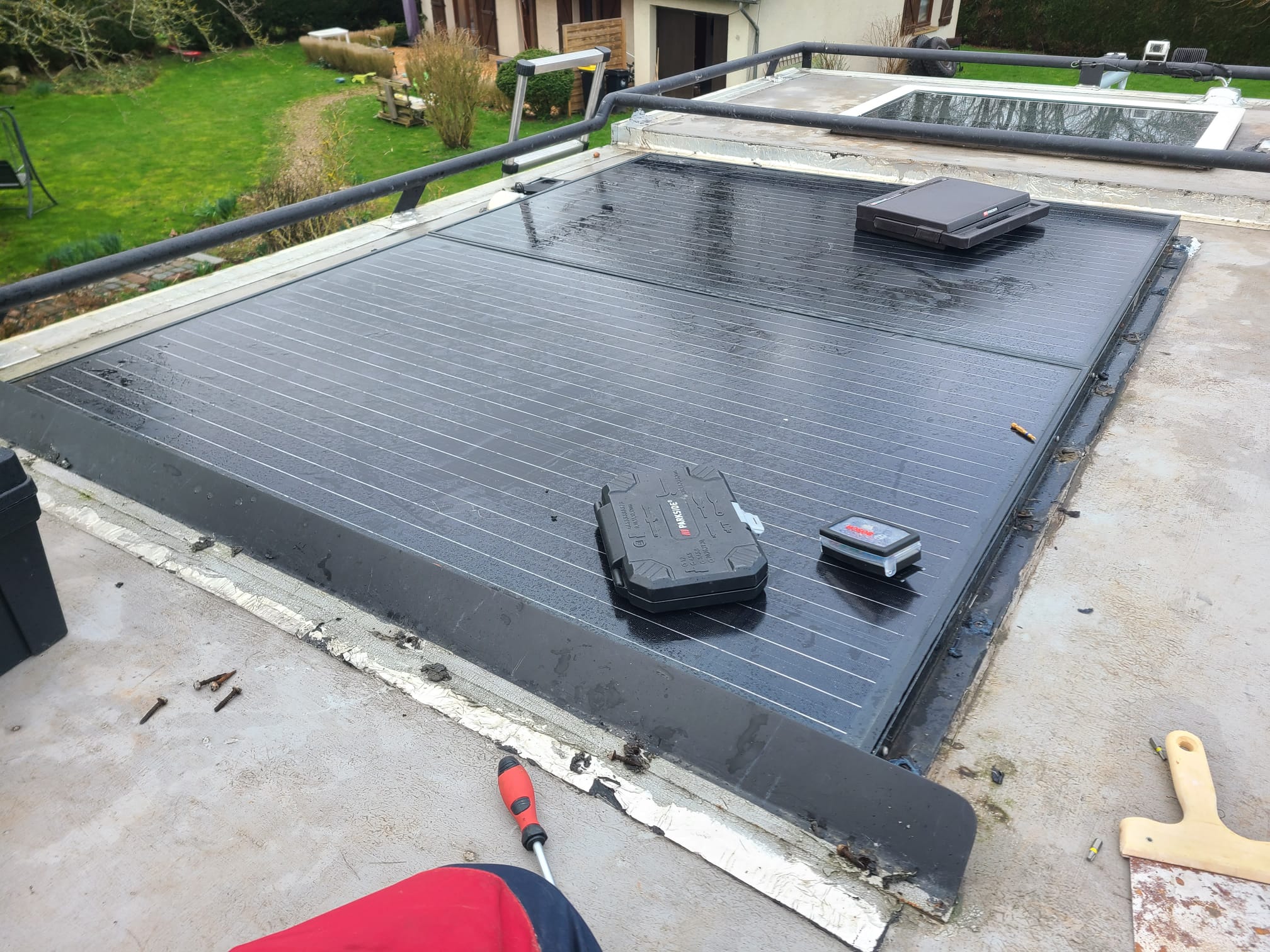 Ma priorité c'est d'avoir une bonne grosse étanchéité sur tout le toit, incluant les bandes alu tant qu'à faire.