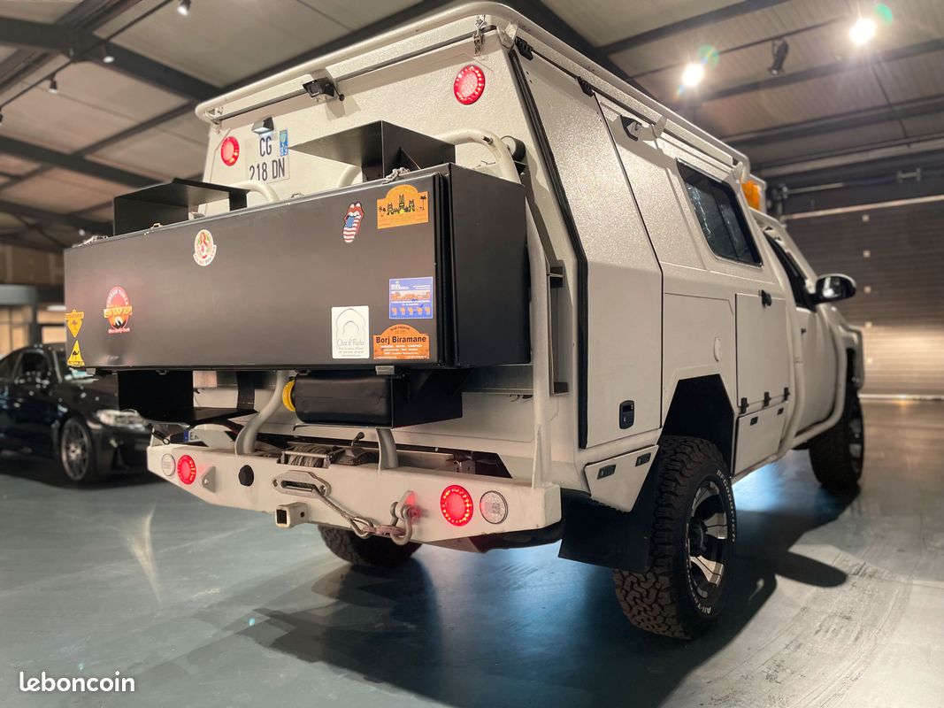 Coffre Ar avec porte jerricans, coffres latéraux externes, galerie avec roue de secours.