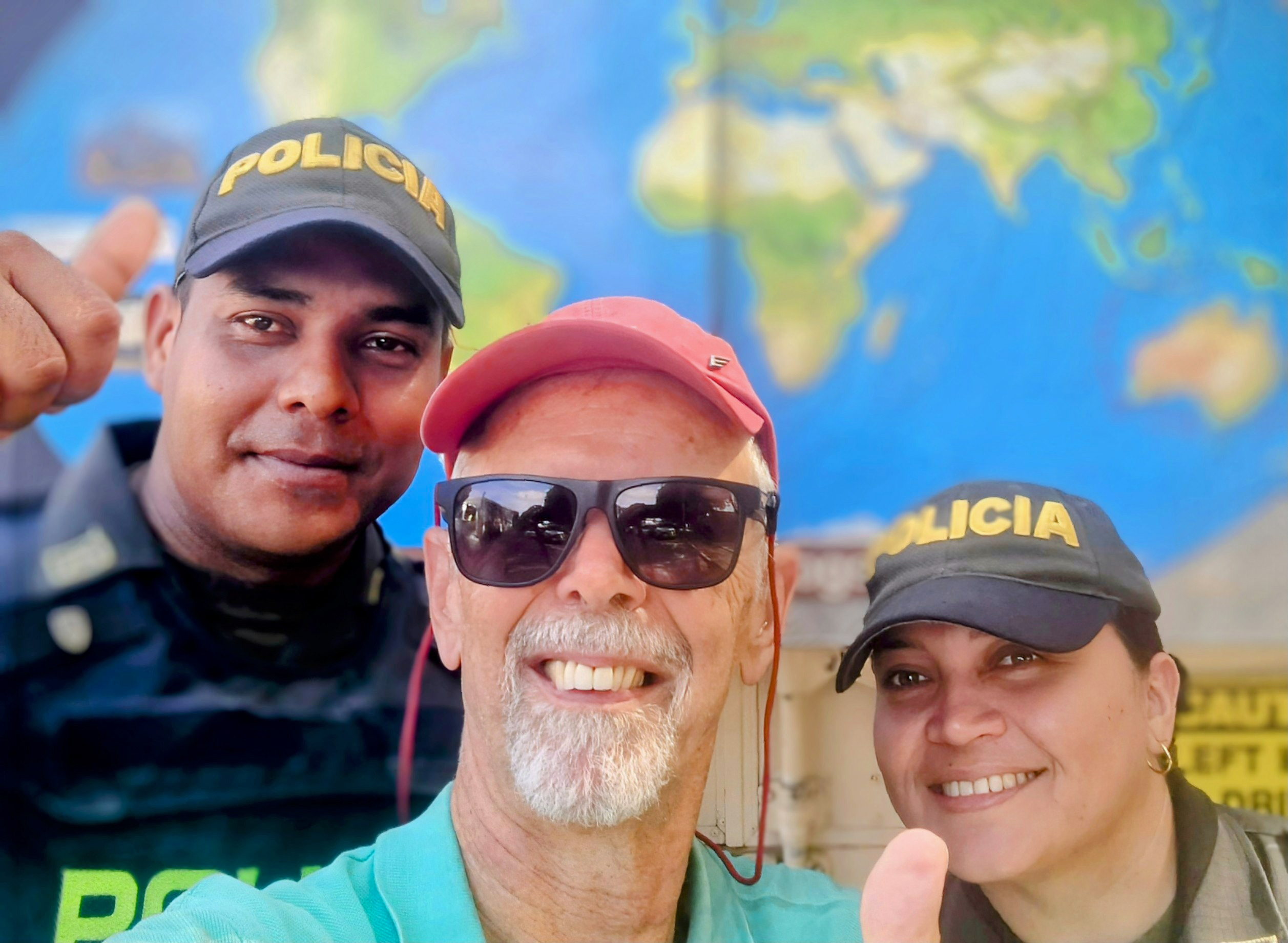 Même les policiers Colombiens veulent des "selfies" avec mon Brutt et moi.