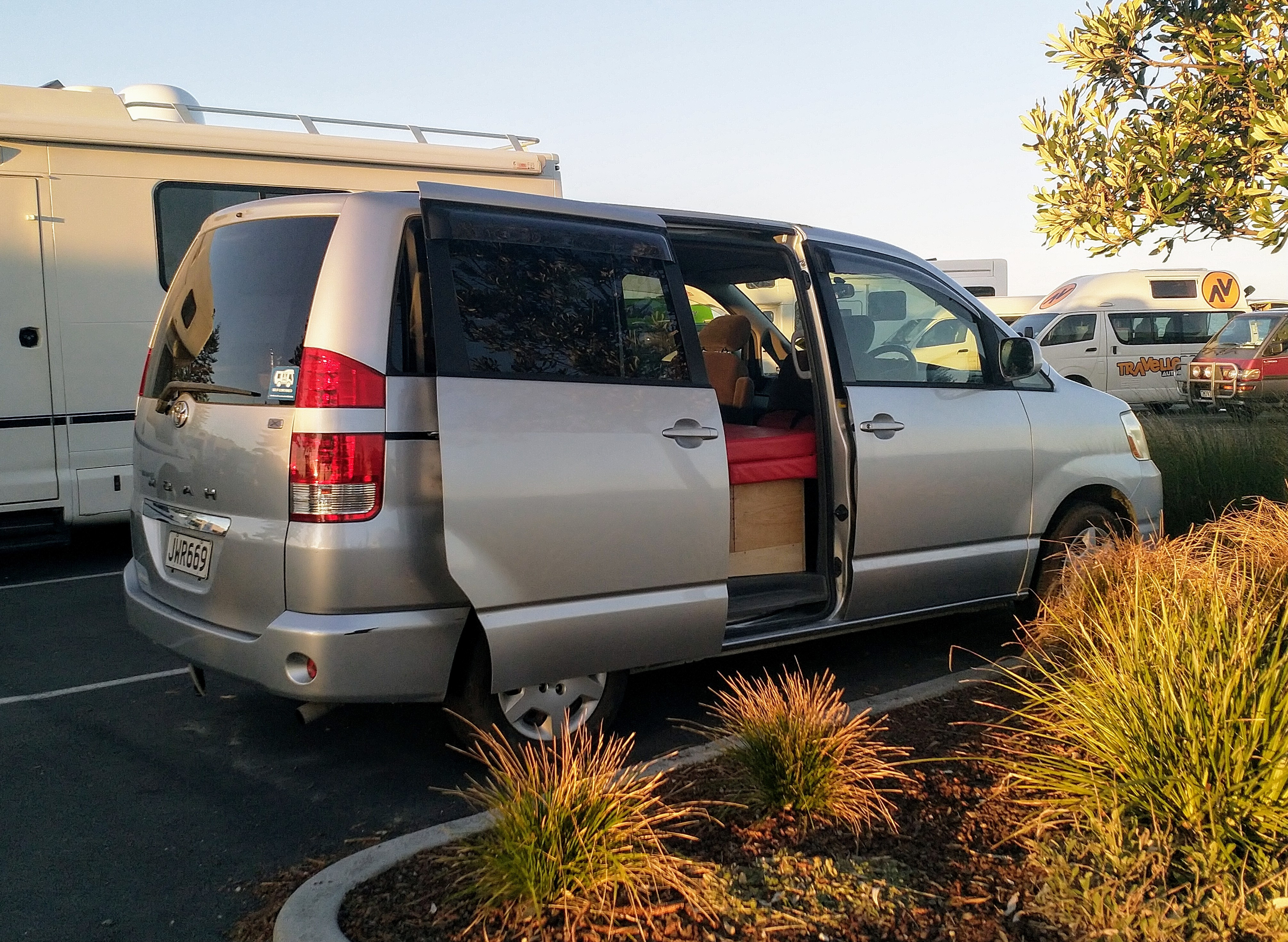 NB - Durant mon séjour en Nouvelle-Zélande (pendant que mon Brutt était sur les flots entre Jakarta et Melbourne), j'avais loué un minuscule van "anonyme". J'ai pu constater une énorme différence, j'étais (momentanément) devenu un "bête" touriste Lambda qui avait loué un "bête" petit van aménagé anonyme et sans attrait...