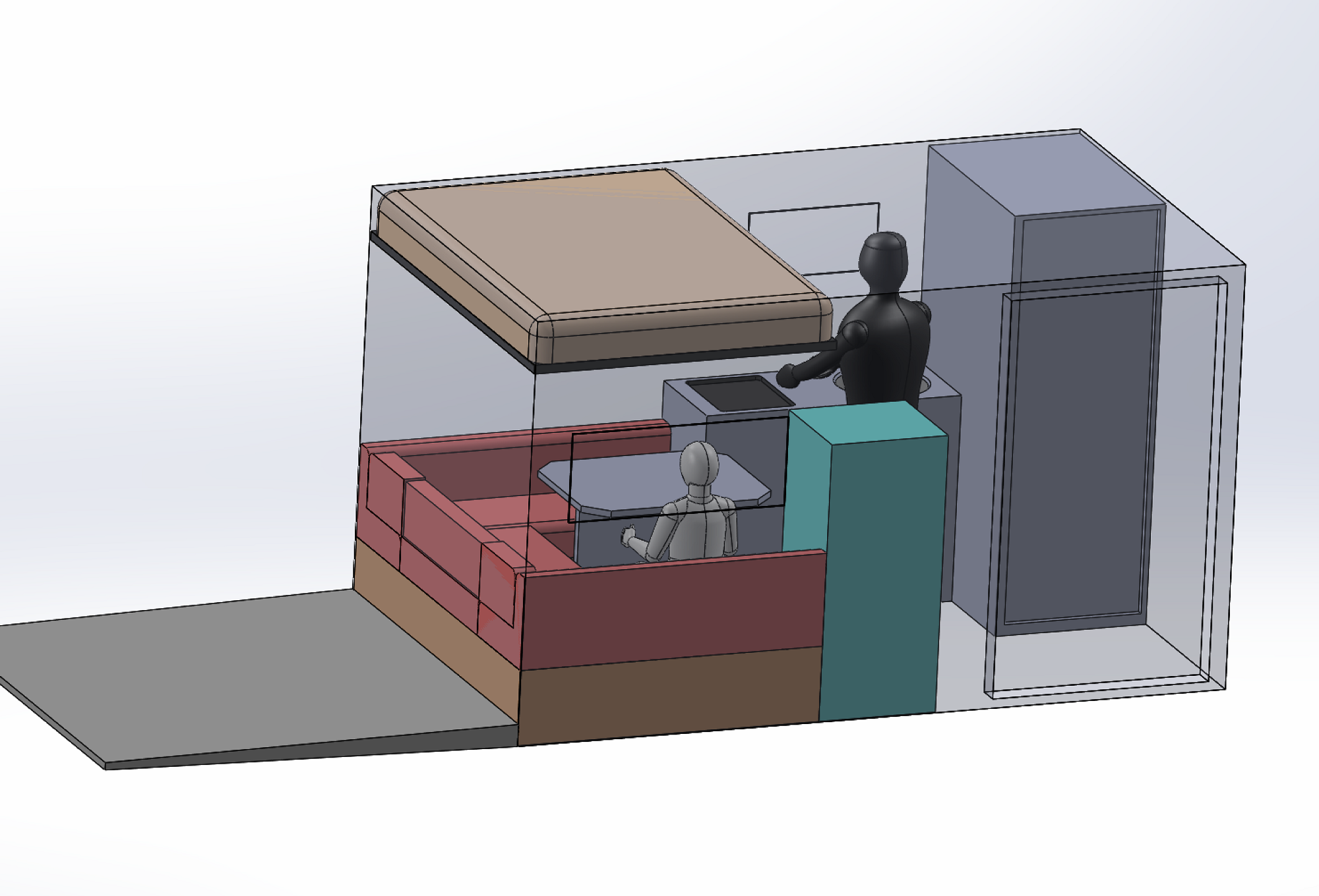 sinon beau travail mais, et même si les camions de ce gabarit ne se destinent pas a un usage urbain, ne trouves tu ça pas limitant de ne pouvoir acceder a la cellule (par cette porte du moins) que dans les endroits ou tu as la place pour déployer cet accès ? je n'ai pas suivi si un passage cellule cabine est prévu en plus mais il me semblait que non ? donc l'autre accès par le hayon terrasse derriere qui doit lui aussi avoir la place pour se déployer.
