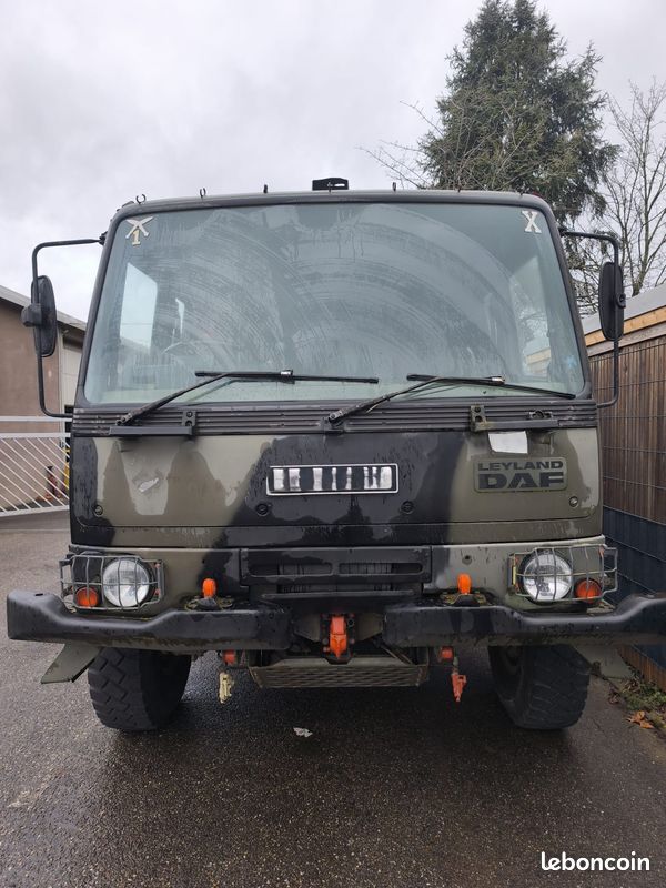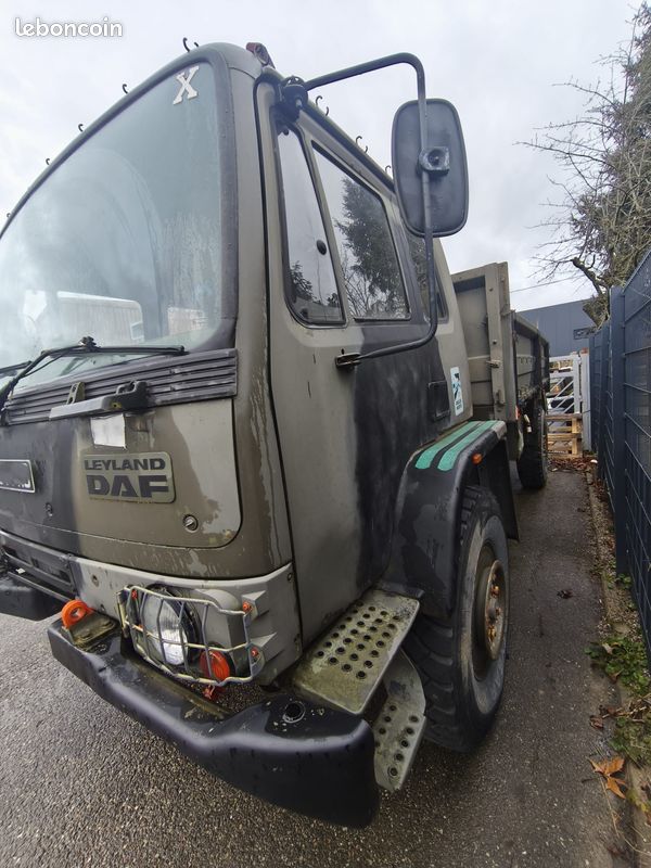 Vends Leyland DAF 4x4 camion militaire (version plateau), ex-armée britannique, robuste et fiable, idéal pour chantier, collection, overland ou balades tout-terrain. Véhicule en bon état général pour son âge (années 90), peinture camouflage d'origine patinée mais saine, pas de grosse rouille structurelle visible (voir photos). Moteur Cummins 5.9L turbo diesel connu pour sa solidité, transmission manuelle 5 vitesses + gamme haute/basse, 4x4 permanent avec blocage de différentiel. Points forts :Pneus en très bon état (gros tout-terrain militaires, sculptures profondes, peu usés – voir photos détaillées).