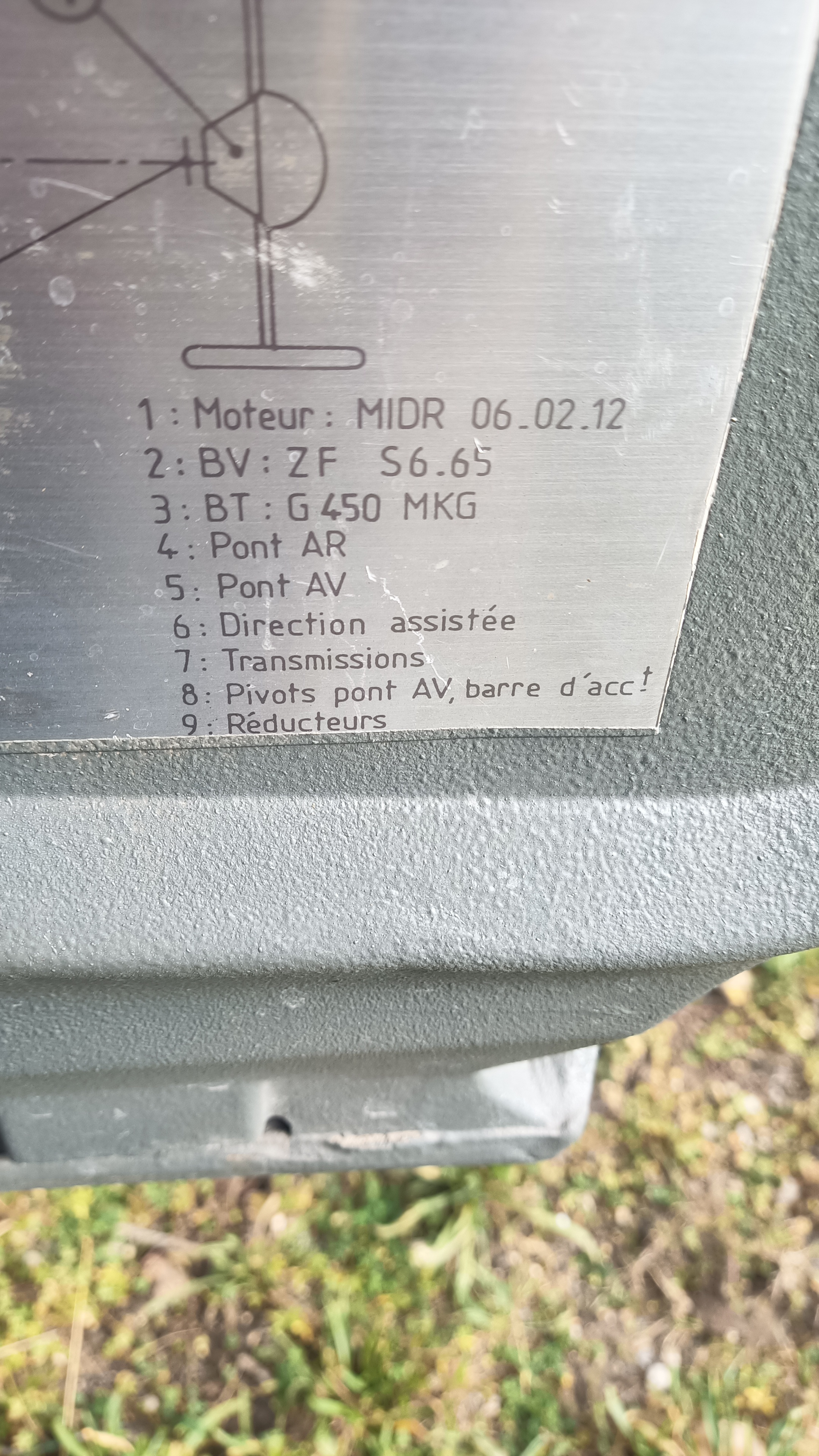 Sur le panneau de porte passager j'ai une plaque en alu avec toute les références des organes regarde voir si tu l'as aussi ??