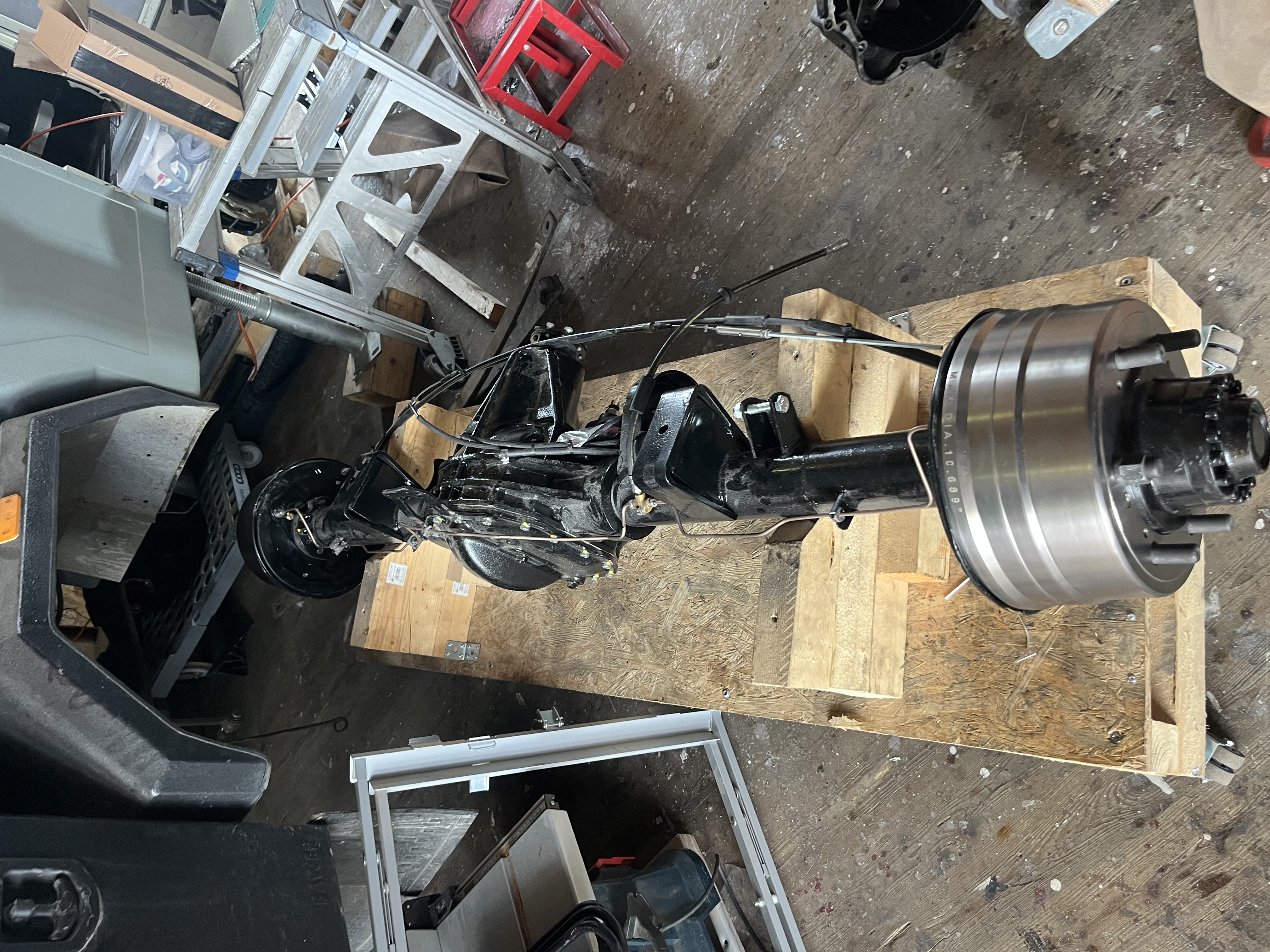 Ponts arrivé tous neuf …. Mais ses abrutis on réussis à faire des dégâts durant le transport donc retour en Allemagne pur refaire un nouveaux tambour de frein et contrôler si pas de voilage de la trompette les plaques de supports des freins sont également tordues .