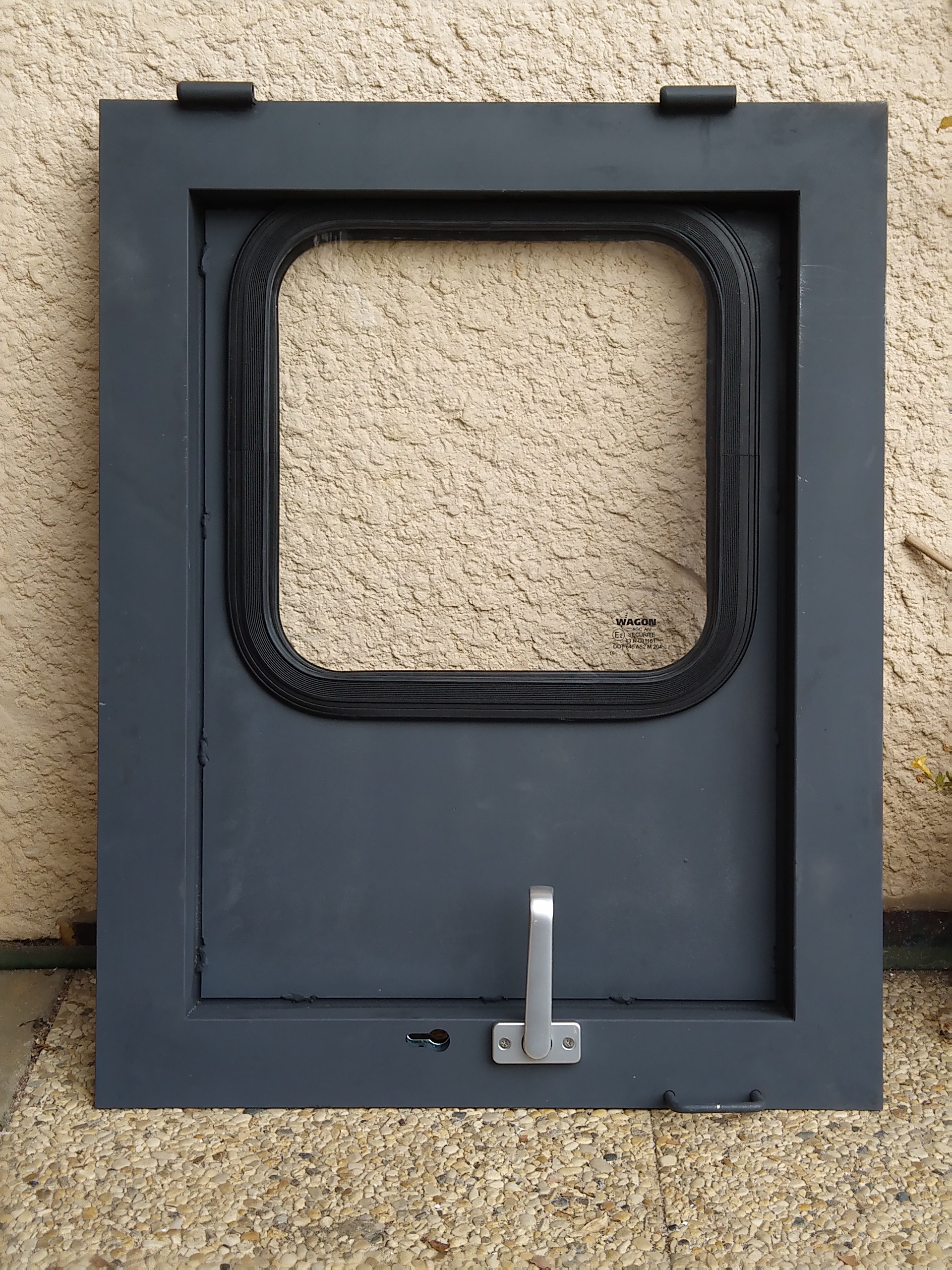 La porte que j'ai créée dans la cellule, ne pèse pas trop car toute l'armature est en alu et le panneau de remplisage en plastique renforcé de fibres de verre. PRV. .