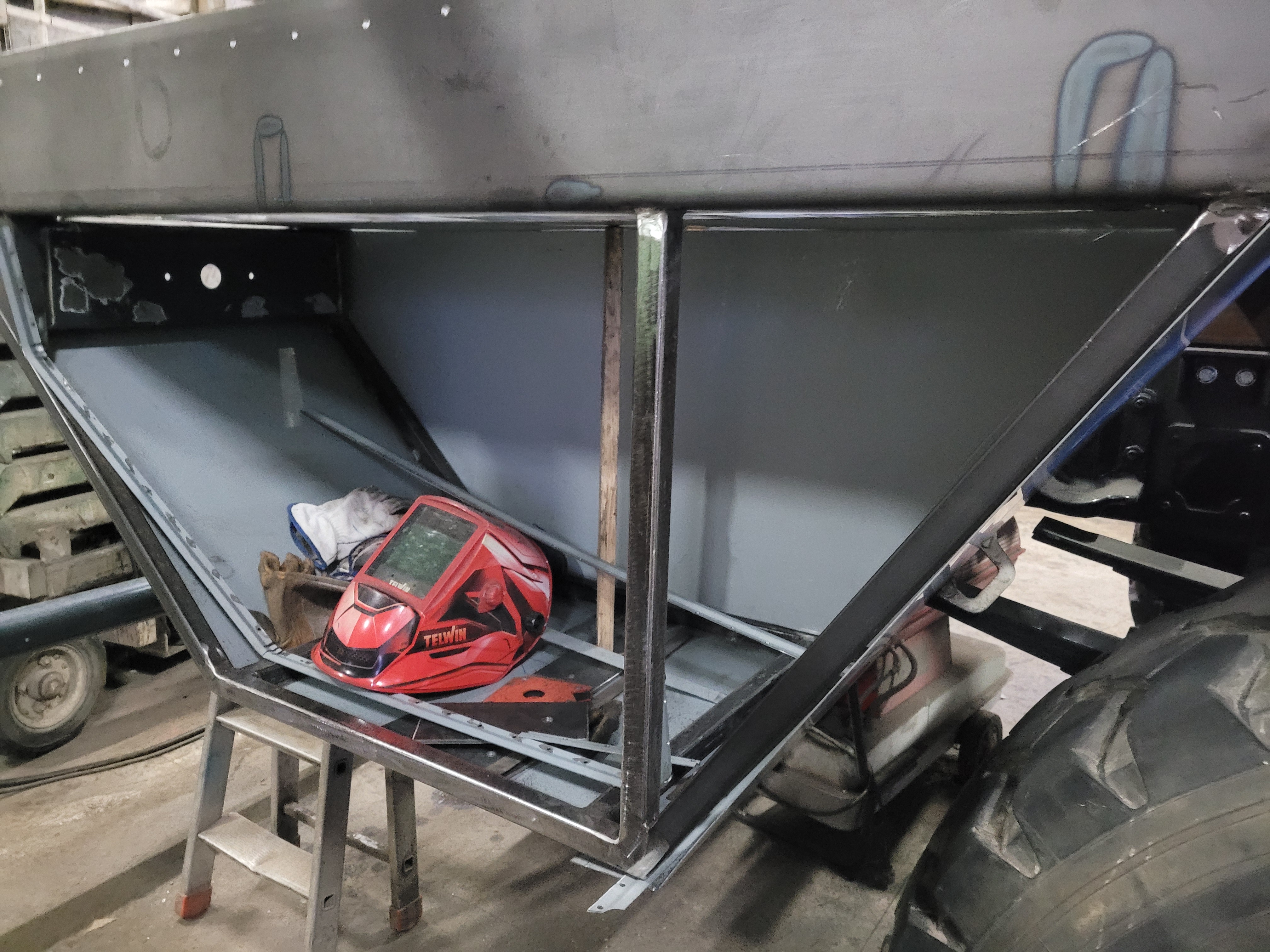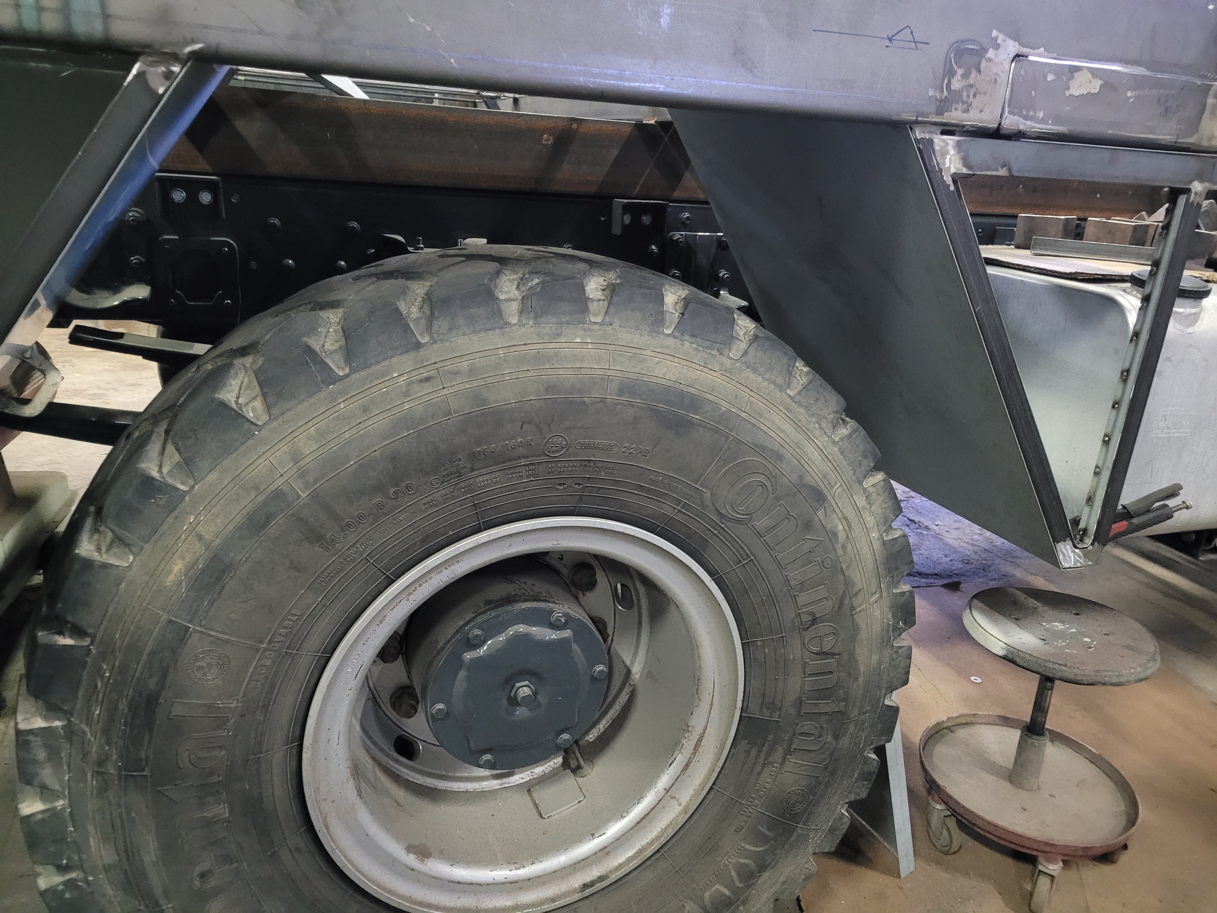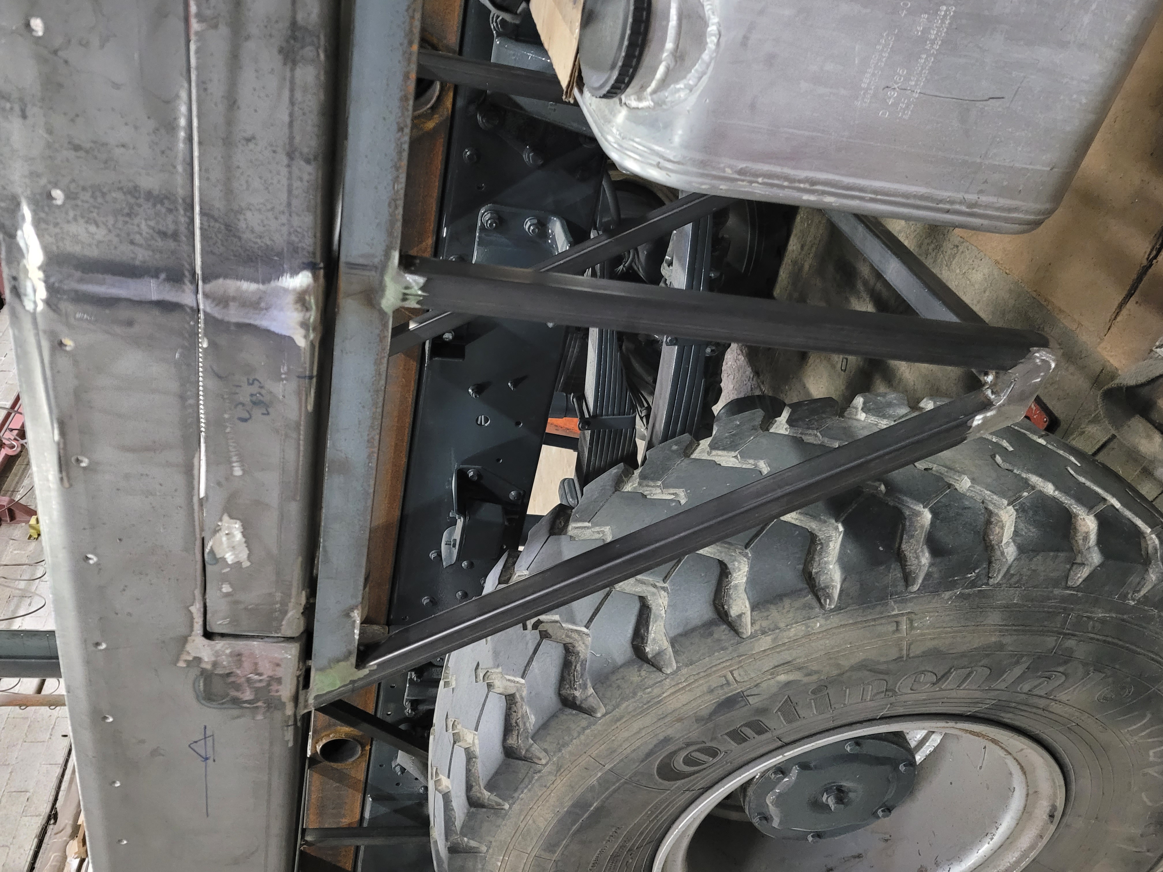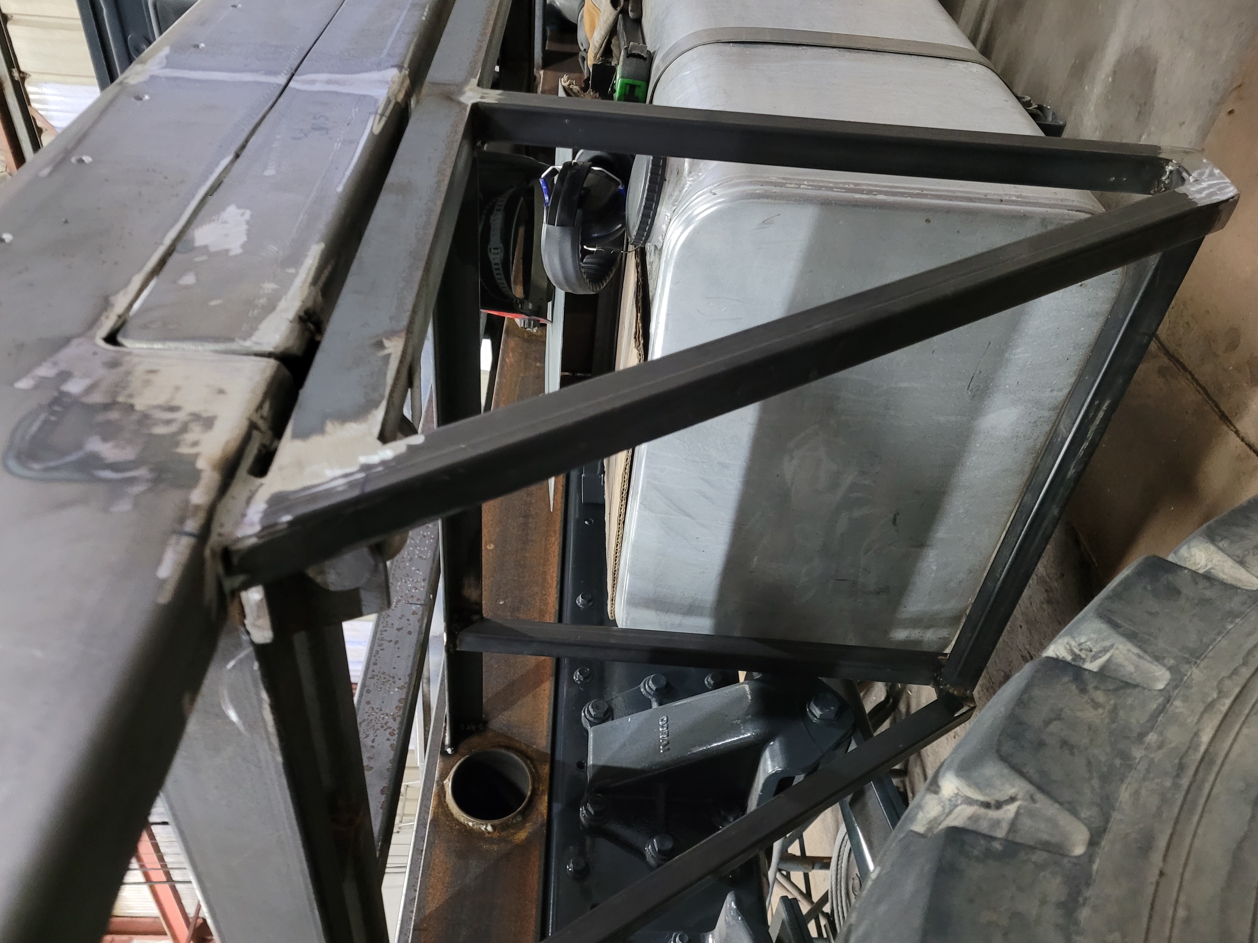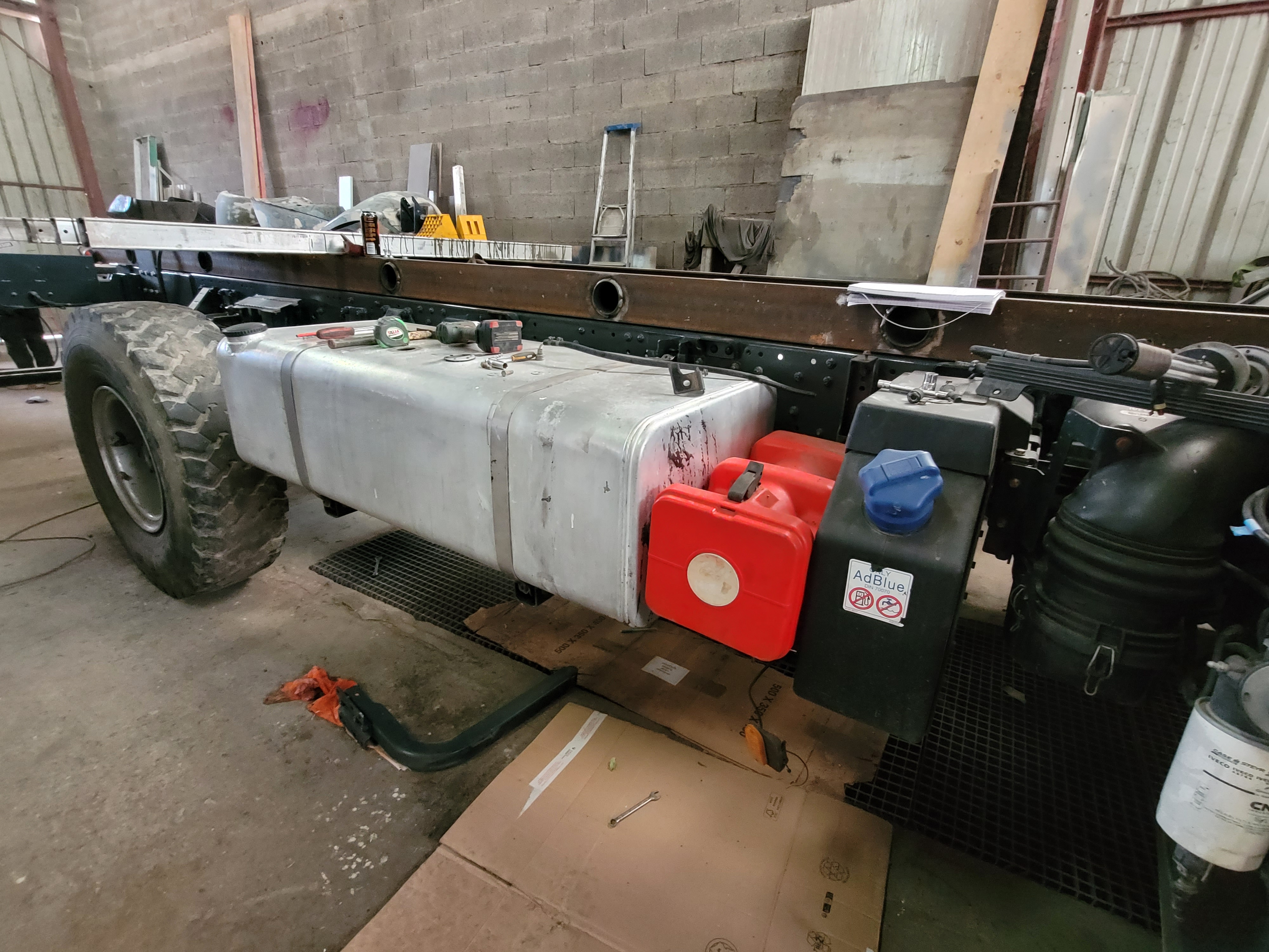 Ensuite j'ai mis en place un réservoir de gasoil de 400L en supplément de celui d'origine qui fait seulement 120L.