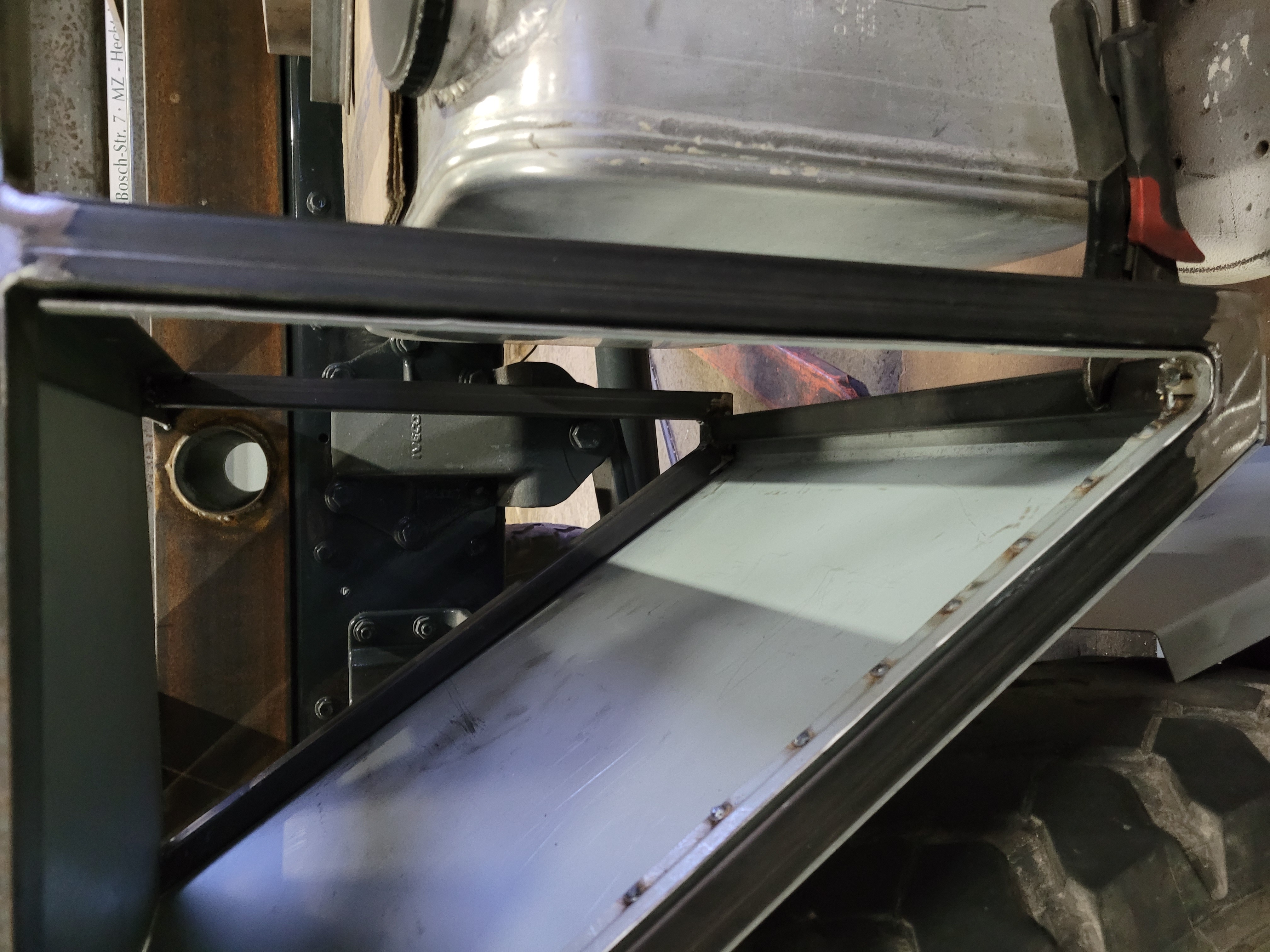 Tout les coffres sont soudés, alors j'ai hésité de les fixer avec des boulons, mais après réflexion je me suis dis que de toute façon je partirai avec un petit poste à souder lors de nos voyage et que si je viens à toucher/casser un des coffres j'aurai juste à souder alors que si c'est un boulon qui casse net dans un de mes tubes....bah c'est la merde à réparer. Bref je verrai à l'utilisation si j'ai eu raison....