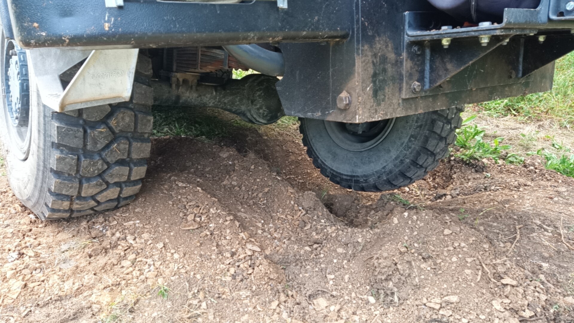 Combien as-tu de débattement entre les deux châssis quand tu est en croisement de pont? C'est quand même limite par ton ressort?