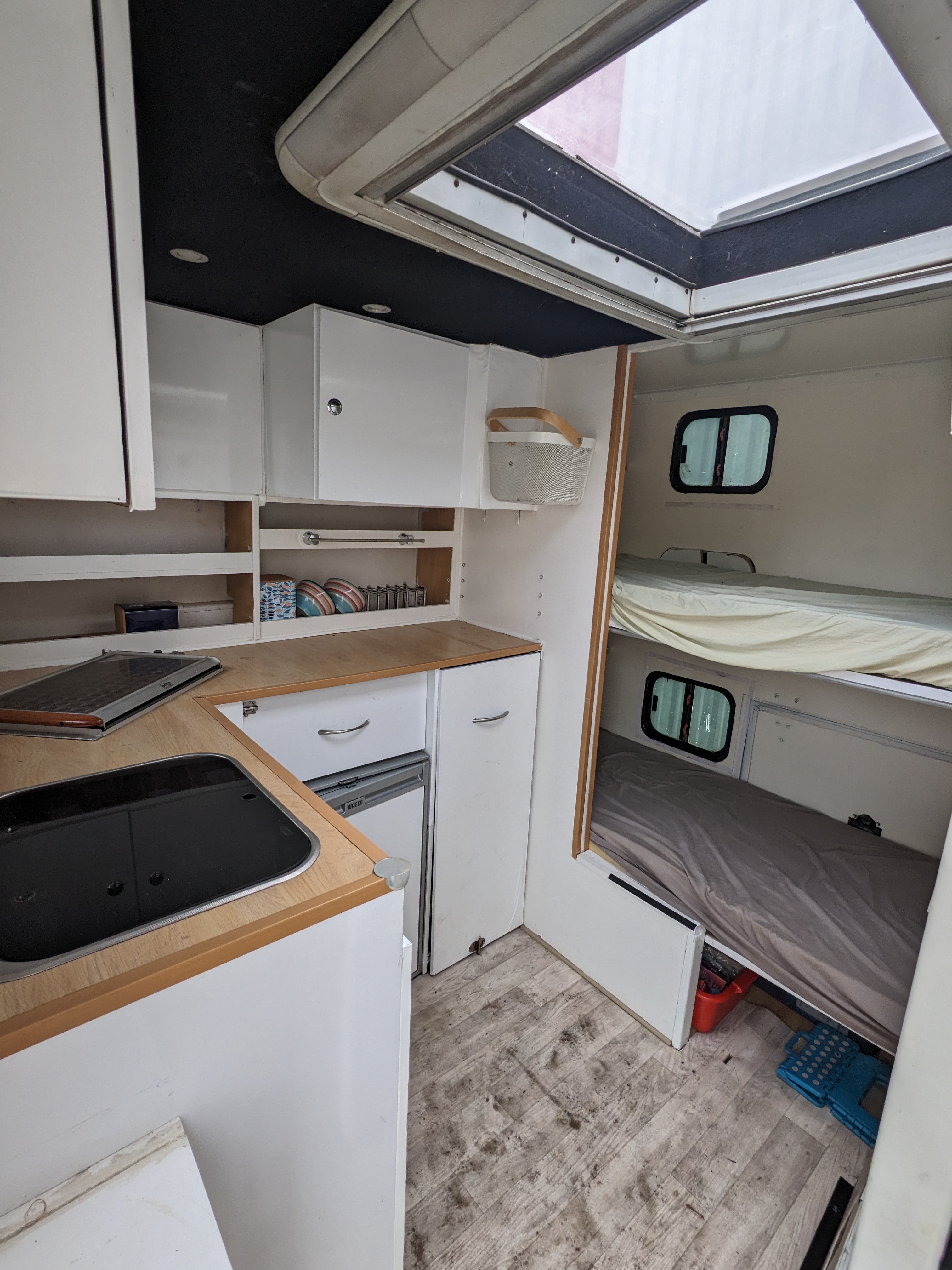 Le voici! Nous avons prévu de faire refaire l'intérieur. Nous voulons y mettre un lit double fixe ou relevable, et un lit enfant. Et surtout retirer le mur qui coupe la pièce en deux. Nous passeront pas des artisans.Evasion Trucklife wrote: 21 Feb 2026 18:29La pauvre !!!