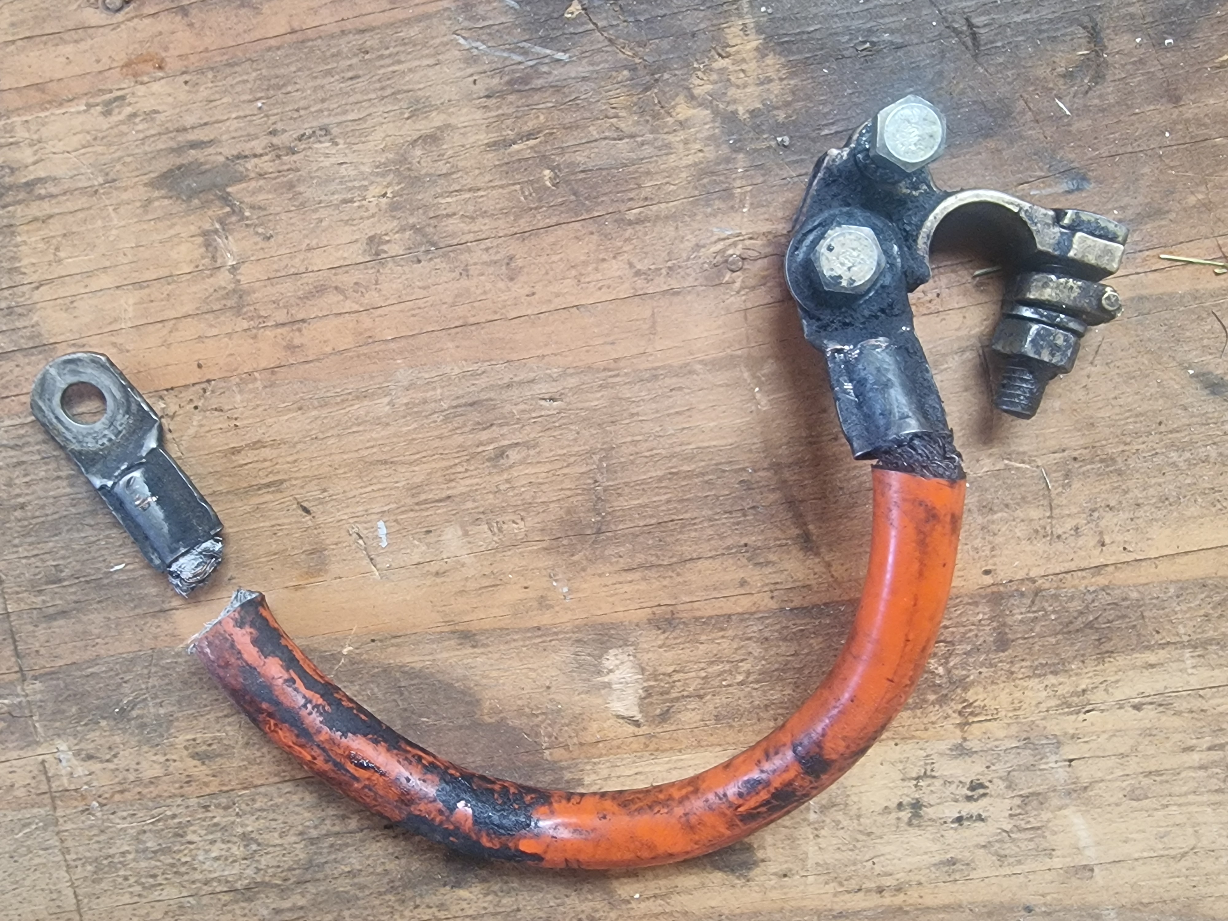 Lors du démontage de celles-ci (afin de les remplacer par des batteries neuves) je constate que le câble entre les 2 batteries est complètement corrodé, il est même cassé!