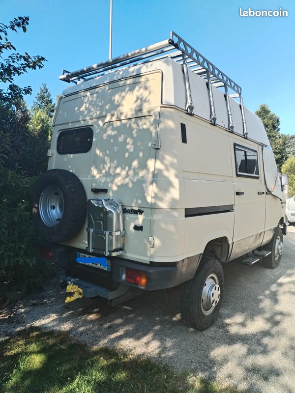VENDS: fourgon très bien aménagé pour 2 personnes. IVECO 40.10 en 3,5 T Moteur SOFIM 103 cv à chaine de distribution remplacée à 221000 km. Chauffage Autotherm 2000 w. 70 litres eau propre et 40 l eau usée. Gaz 2 feux. Réfrigérateur 120litres en 220 volts. Centrale électrique OUKITEL 2400W rechargeable par panneau solaire 300w fixé sur la galerie. Siege passager pivotant et table amovible. Nombreux rangements sous évier et en hauteur. Lit permanent 140. wc chimique dans placard inferieur. Prise extérieure 220. Attelage 3,5 T, roue de secours, jerrican 20 l. Fermetures ext sur 2 portes AV et AR. Peinture récente, pas de corrosion. Entretien complet par professionnel prochainement.