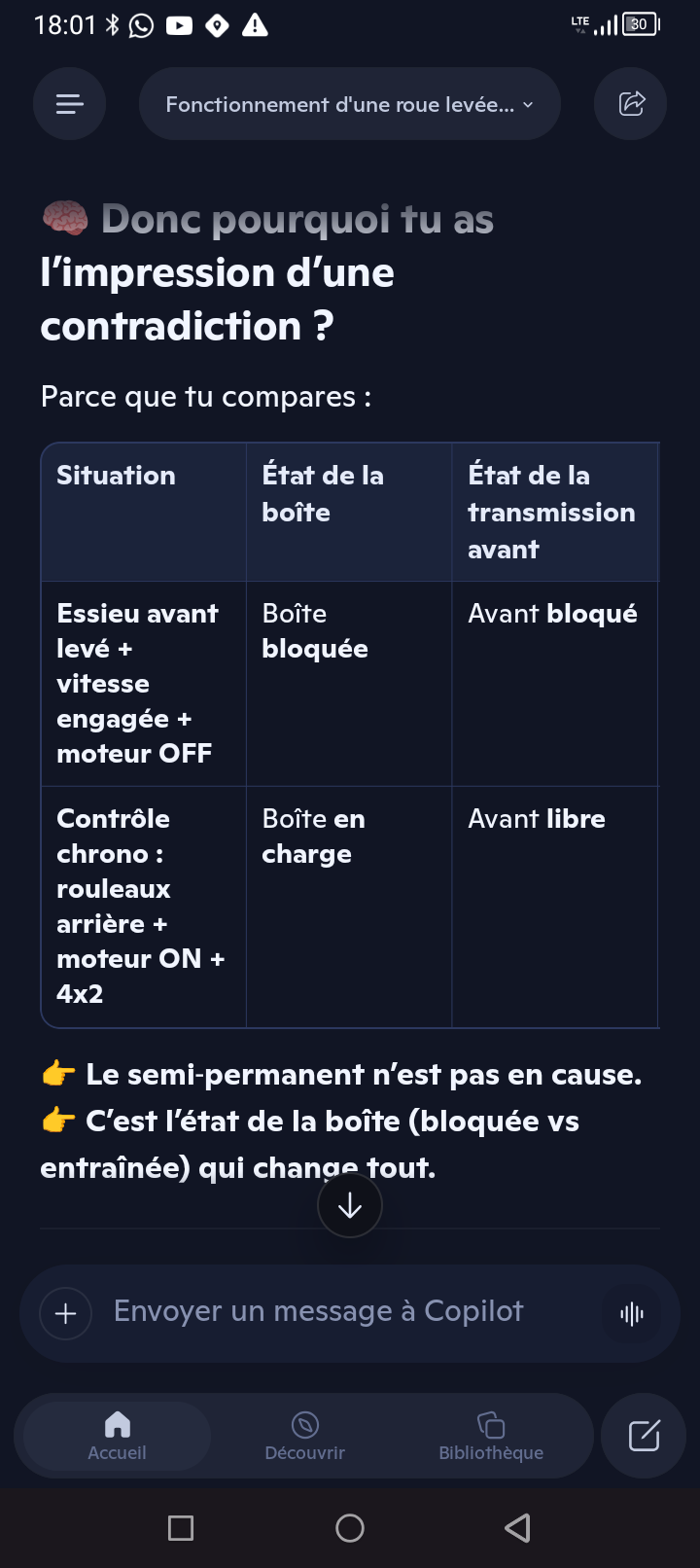 Là où je me pose la question c'est quand fessant des recherches, une IA me dit que mon véhicule est semi permanent et que l'arbre avant tourne ne tourne pas, il est bloqué car la boîte a vitesse est enclenché ! Voici sont explications !