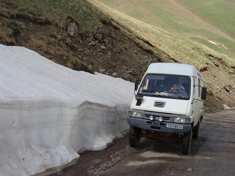Les routes ont souvent été "pourries" surtout en Ukraine et au Kazakstan, et quelques piste du Khirghistan nous ont emmenés à 3400 m d'altitude dans des paysages somptueux.