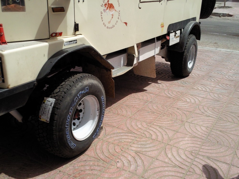 A mon retour j'ai passé un mail à la société Michelin ( c'est aussi Goodrich), qui m'ont aussitôt contacté , ils ont récupéré le pneu qui a failli exposer à Tarfaya pour expertise, peu de temps après un expert de chez eux me téléphone pour une batteries de questions , et vu les réponses décide de venir voir le véhicule , les jantes et les autres pneus .