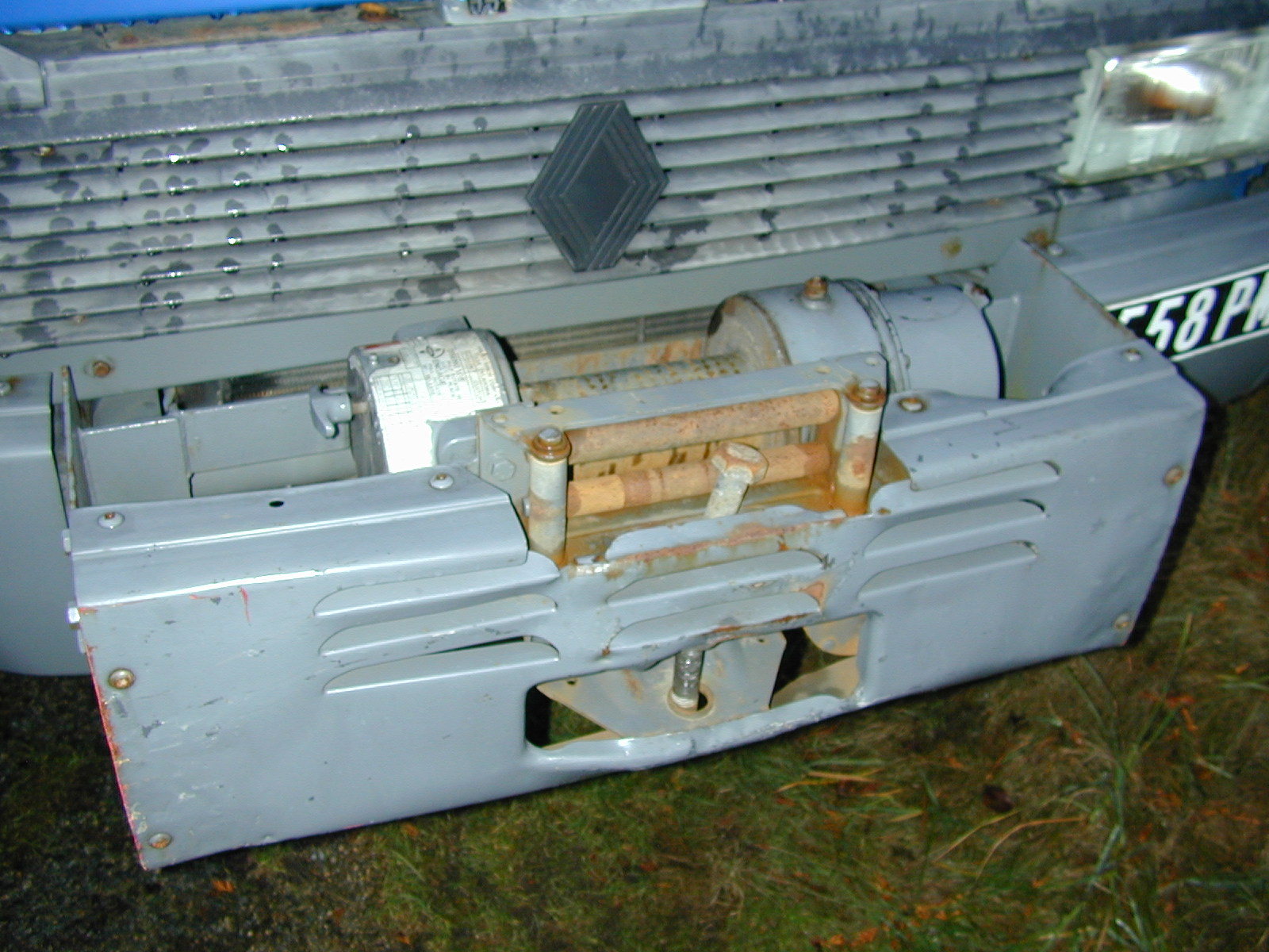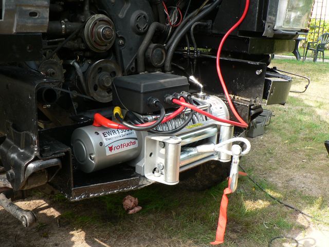 Pour ce qui est de la platine de fixation, je l'ai faite un peu rapidement avec le matériel que j'avais sous la main. Je compte refaire un platine un peu plus costaud en utilisant une plieuse pour éviter les soudures et en prenant de la tôle plus épaisse. Le treuil est placé "relativement bas" pour qu'il ne gène pas le flux d'air au niveau du radiateur, sinon il y a risque de surchauffe moteur.