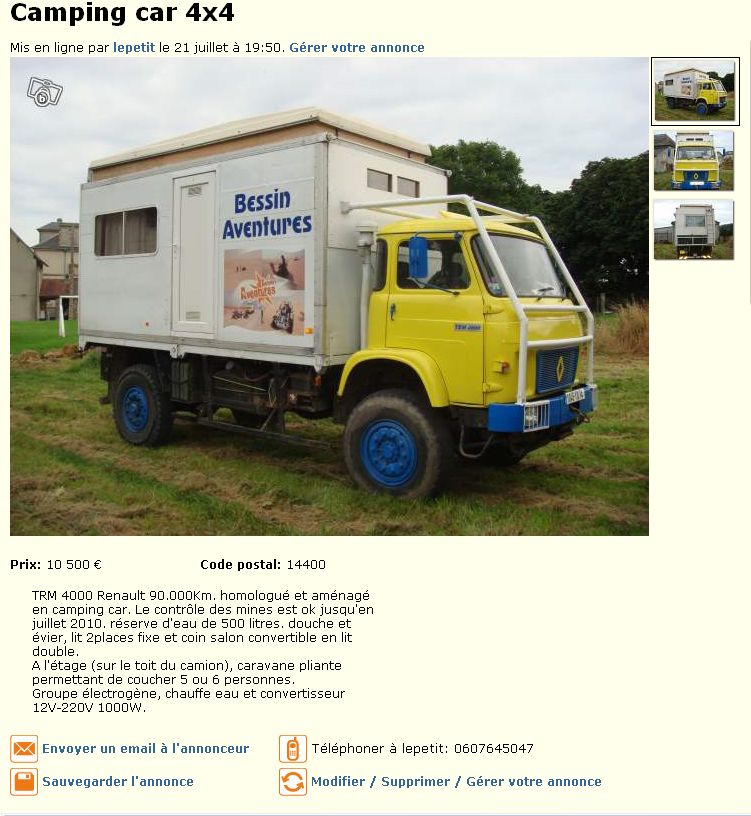 Le camion est en vente depuis un moment. Pour l'instant il n'aurait eu que des propositions d'échanges contre des véhicules.. il préfère vendre, donc le prix doit se négocier!!