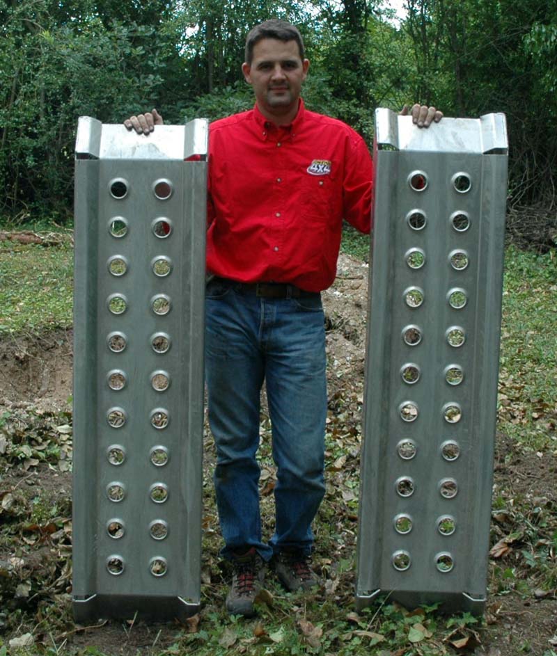 Les rampes Mantec sont en fait des plaques en alu de désensablage qui grâce à un savant pliage de leurs bords en U et à des renforts de soudure sont capables de supporter le poids d’un lourd 4x4 et donc de servir de rampe pour franchir des obstacles qui normalement bloqueraient votre véhicule à 4 roues motrices !