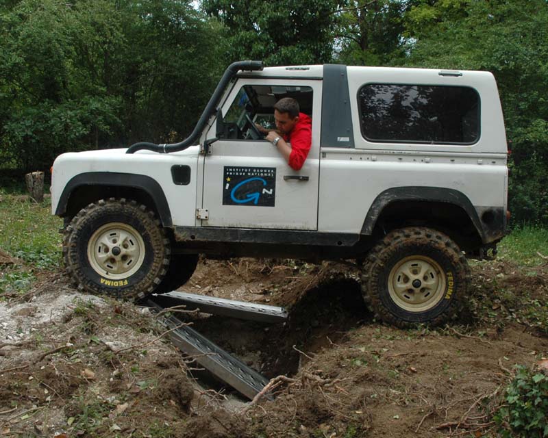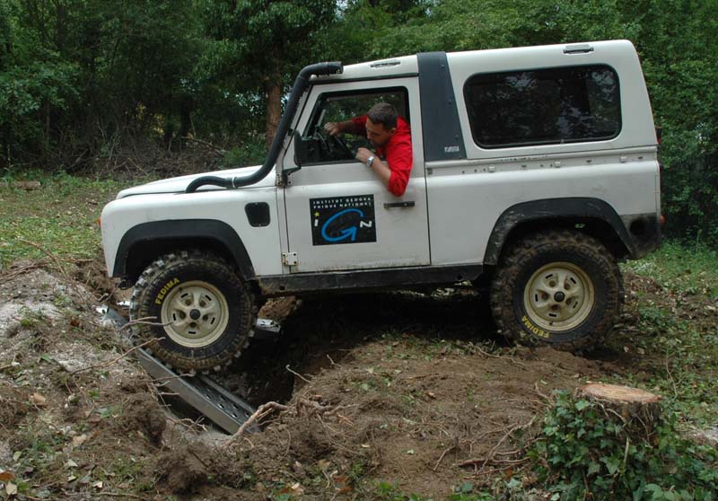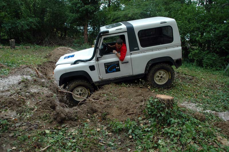 Le grip est bon et le land commence à grimper, la situation est un peu scabreuse mais le rampes ne « bronchent » pas, aucun signe de déformations, bientôt les roues ressortent du trou et le Land se retrouve chevauchant la tranchée.