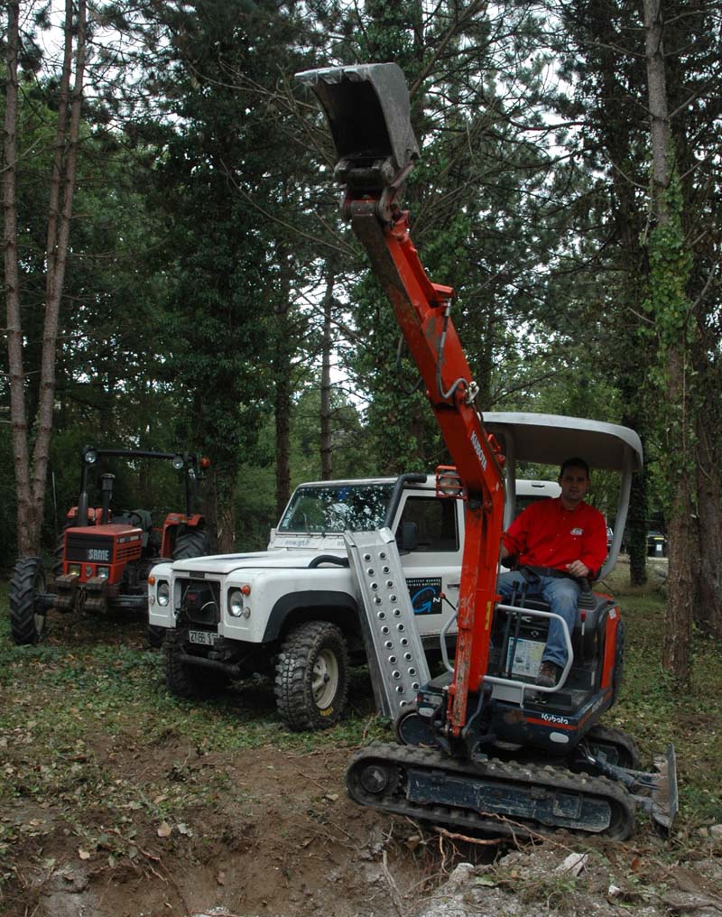 Réaliser un tel test ne pouvait pas se faire à la légère, alors à la rédaction nous avons sorti le matériel, imaginez un peu… une pelleteuse ( pour faire une vraie tranchée !), un tracteur 4x4 ( pour ressortir le Land et assurer le coup !), un Land bien équipé et qui craint rien (grosses roues et blocages !) et … un grand et gros chien ( parce qu’on l’aime bien jym !)!!!
