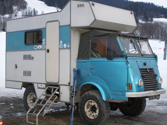 Pour raison de santé camping car 3 places sur Renault Goëlette remotorisé diesel 3,3l moteur re-construit inf.à 10000Km. Roues 900X16 jantes Nato